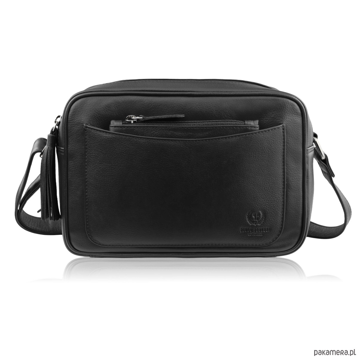 Torebka damska skórzana na ramię czarna mała z etui Paolo Peruzzi AY-20-BL