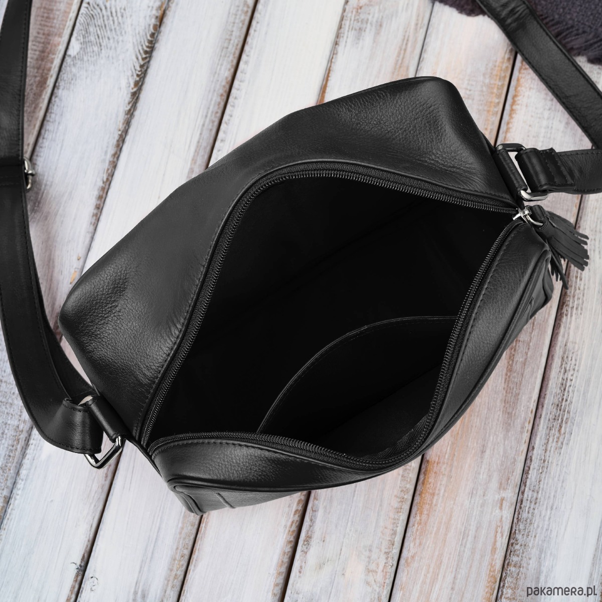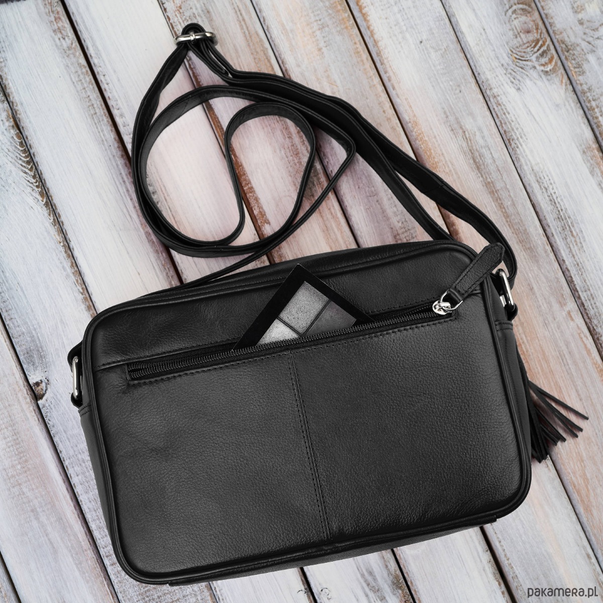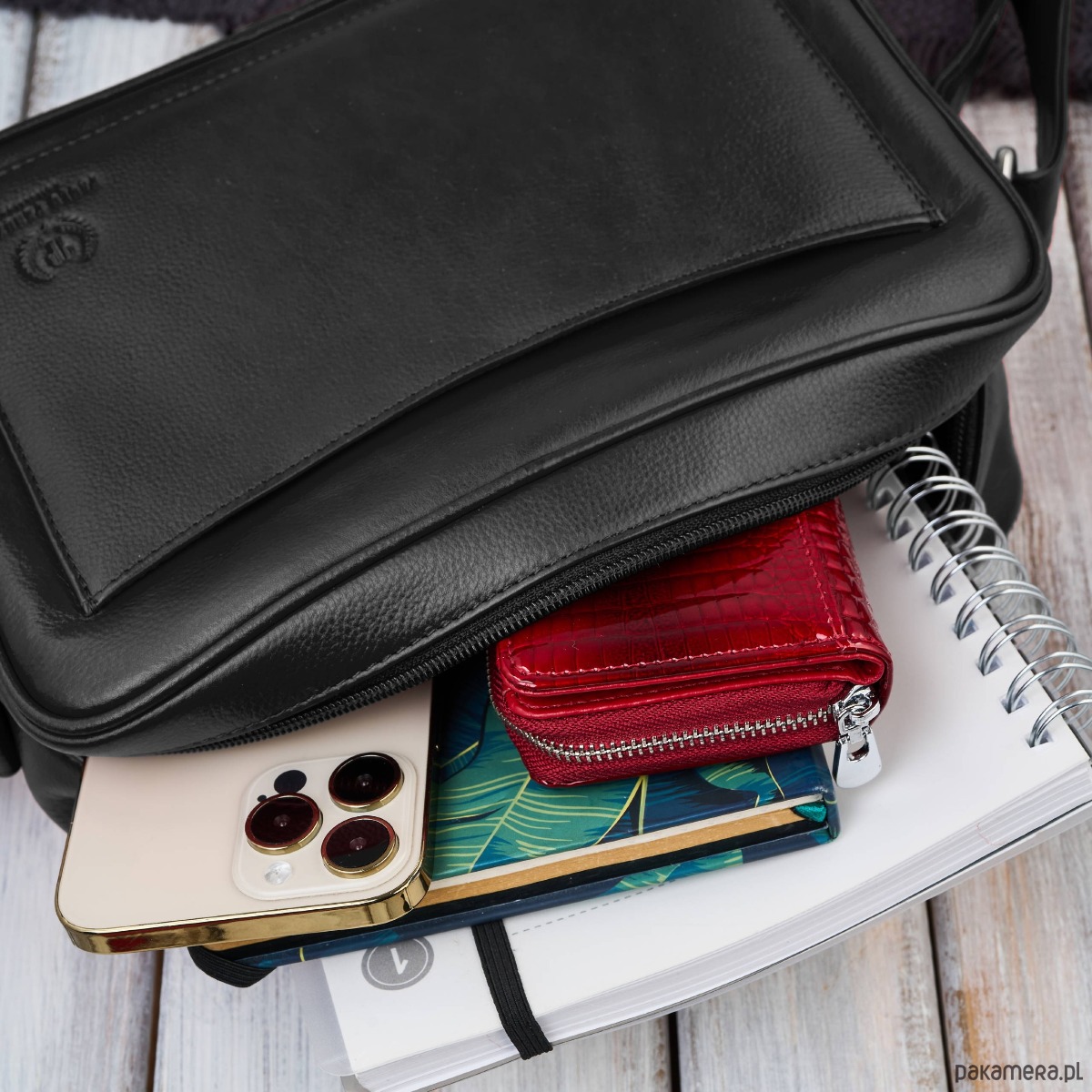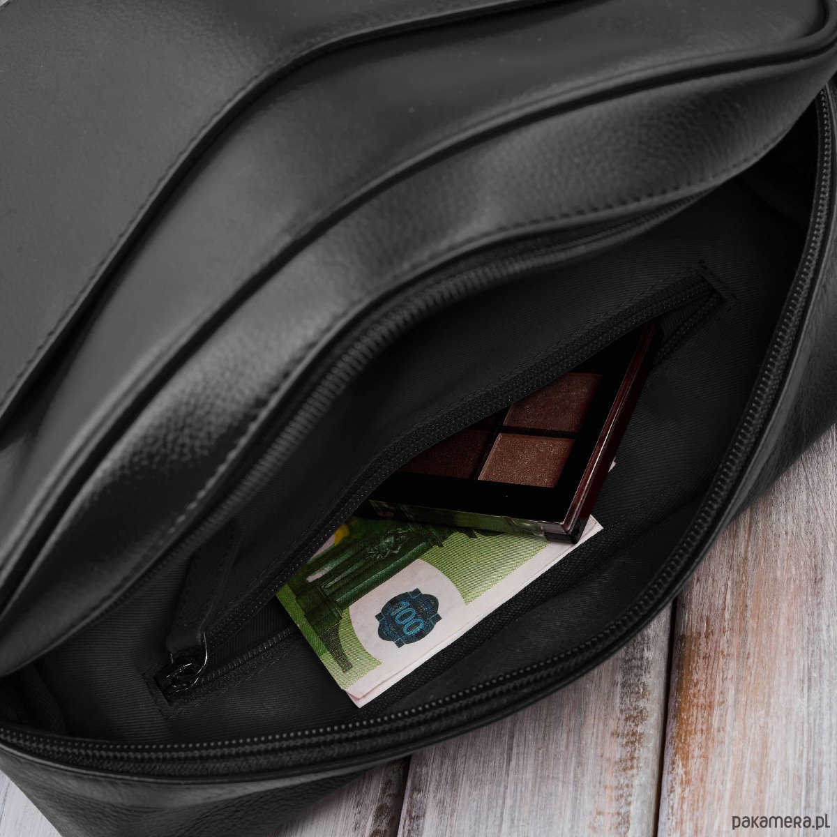 Regulowany pasek umożliwia noszenie klasycznie na ramieniu lub crossbody