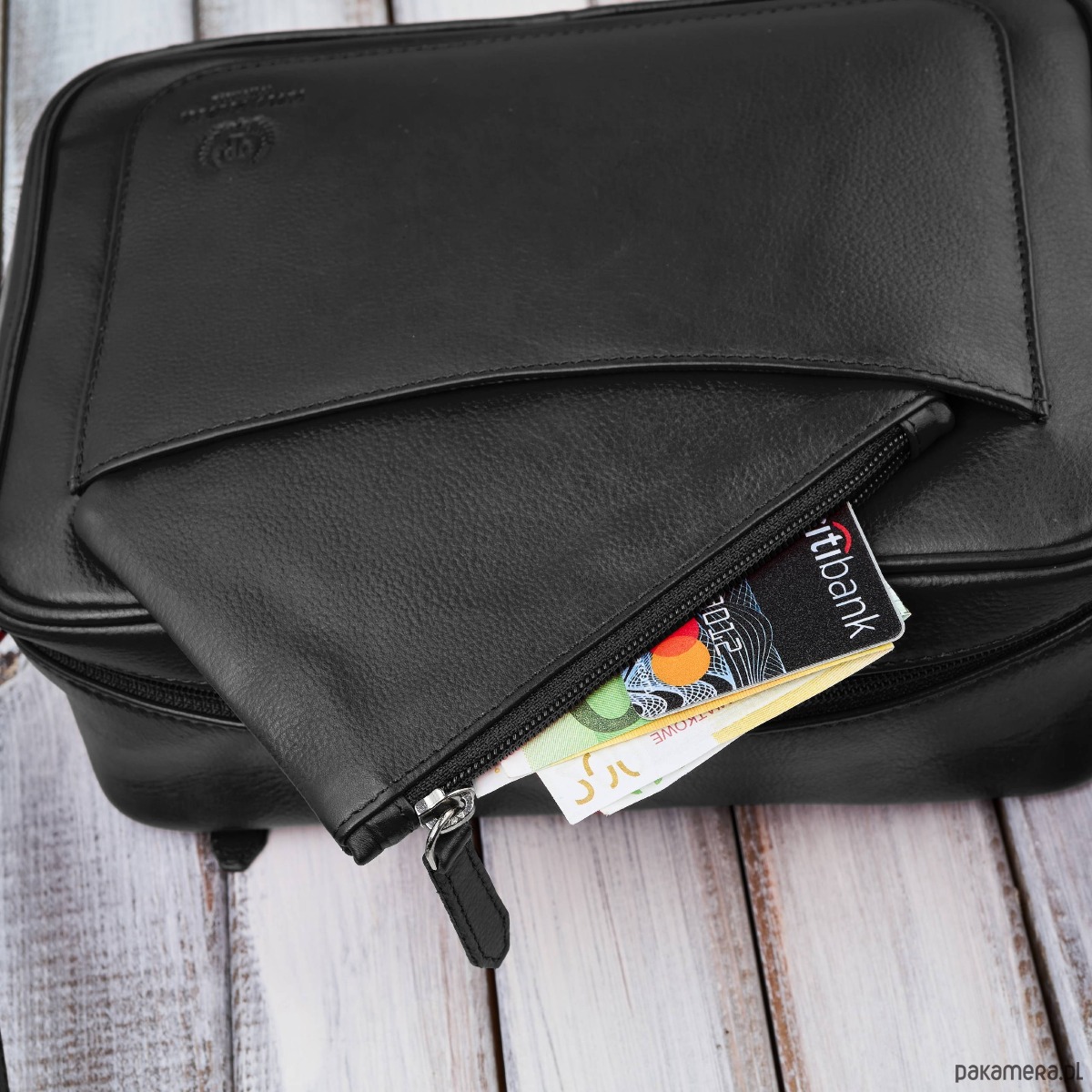 Dodatkowa saszetka / etui (15 × 11 cm) idealna na karty, monety, banknoty lub inne drobne przedmioty - można ją w każdej chwili wyjąć, schować do innej kieszeni lub używać osobno