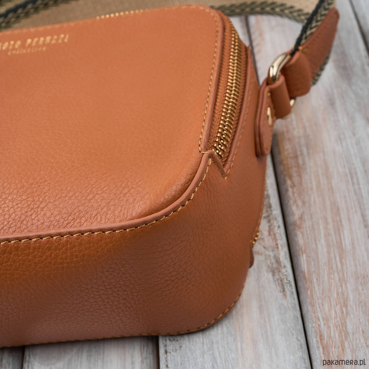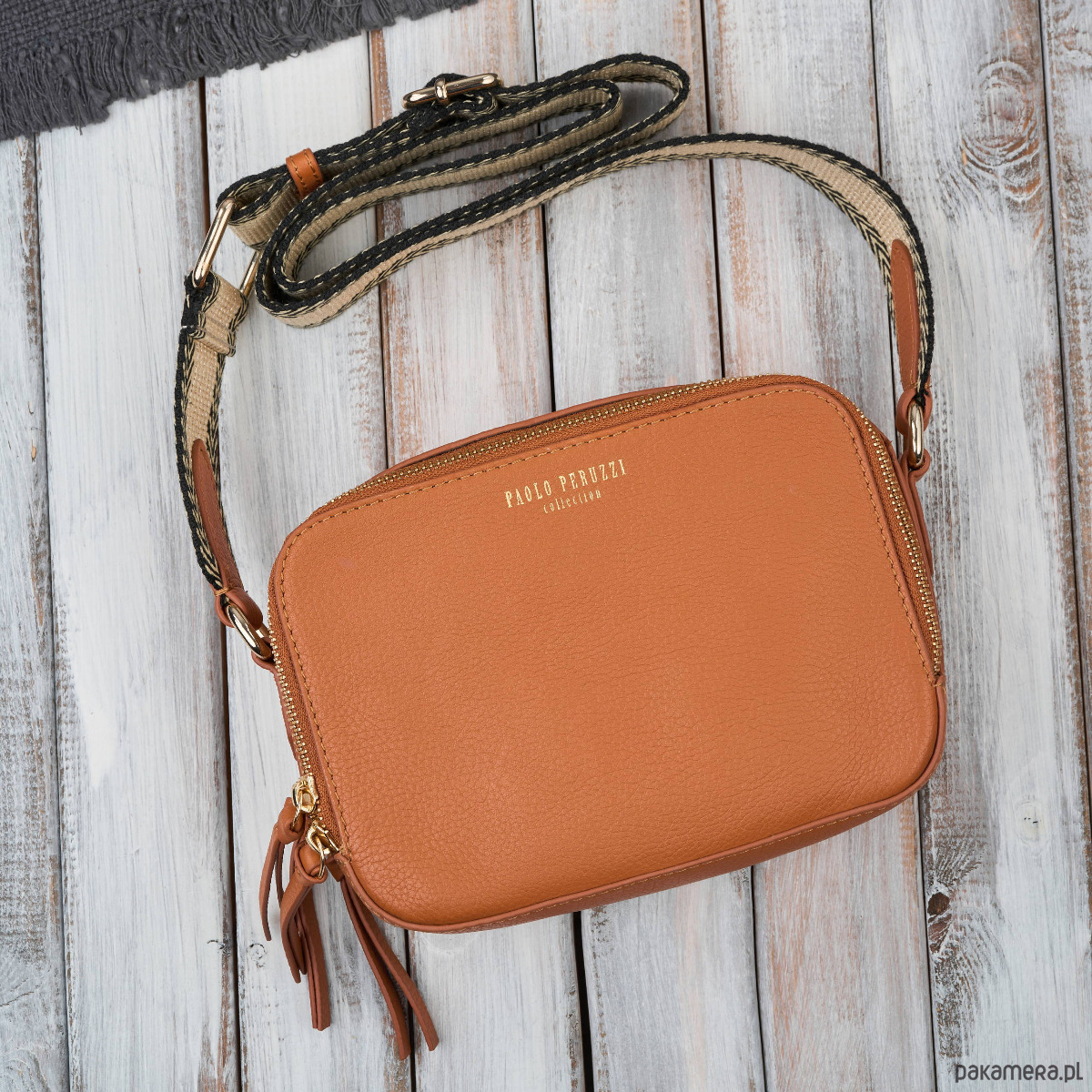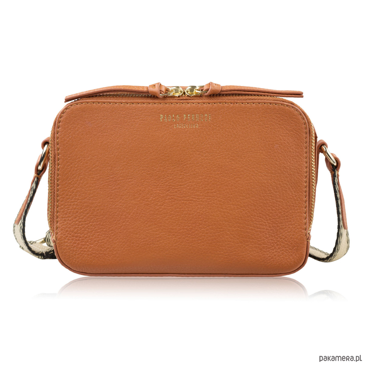 Torebka damska skórzana listonoszka na ramię modna koniakowa Paolo Peruzzi KV
