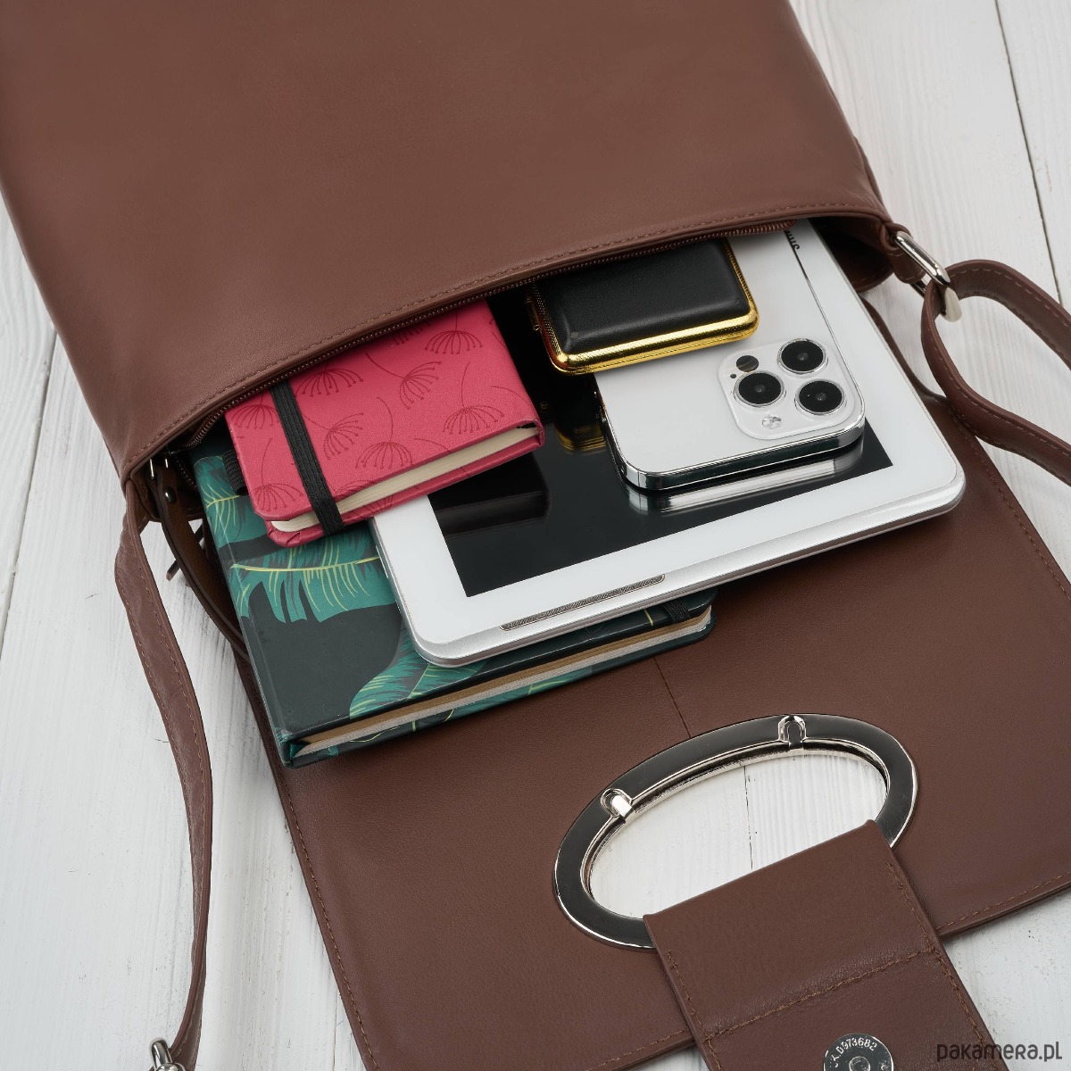 Choć torebka nie mieści formatu A4, jej przemyślane wnętrze sprawia, że bez problemu pomieścisz wszystkie niezbędne rzeczy: portfel, telefon, kosmetyki czy klucze. To doskonały przykład, że torebki damskie skórzane mogą być jednocześnie stylowe i praktyczne.