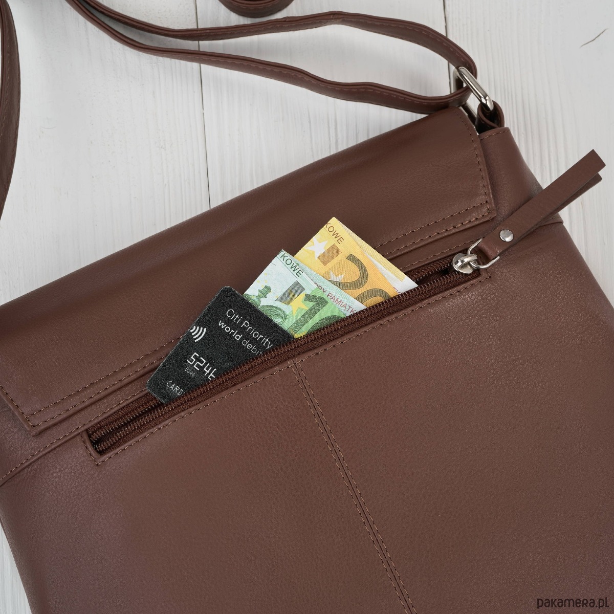1 kieszeń na zamek z tyłu torebki – szybki dostęp do najważniejszych rzeczy