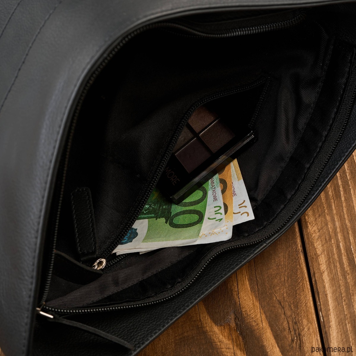 Centralna kieszeń zapinana na zamek, pełniąca funkcję bezpiecznego separatora