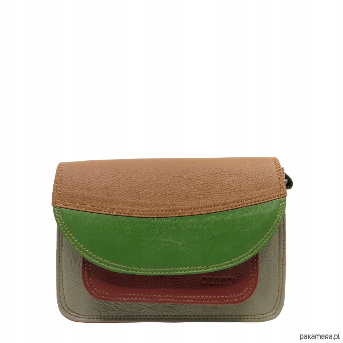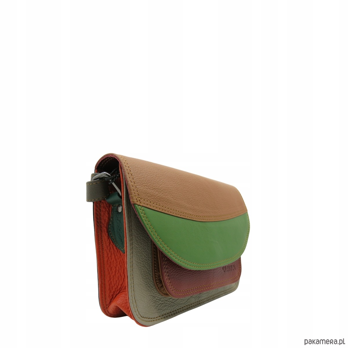 Torebka damska skórzana regulowany pasek kolorowa eko OLIVKA