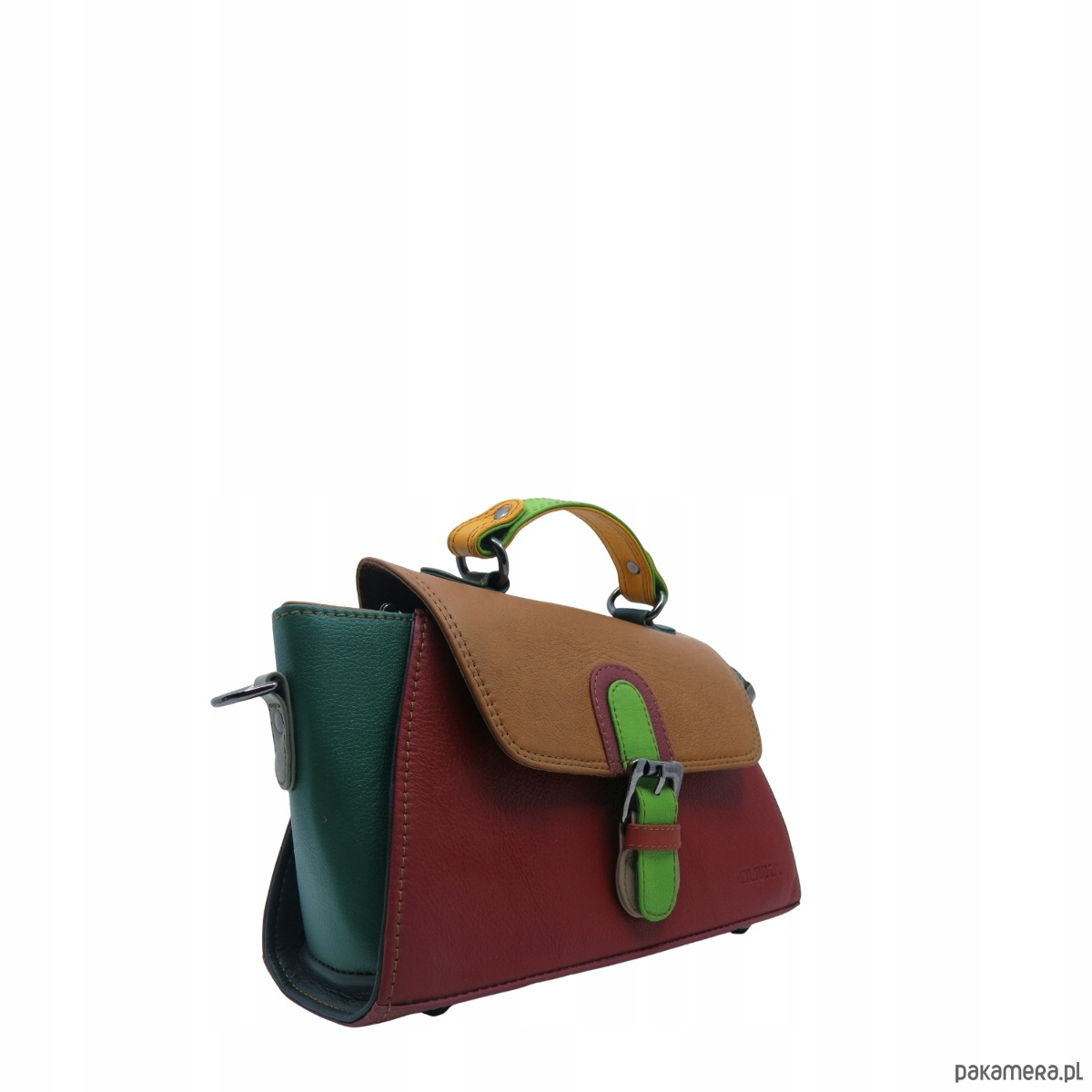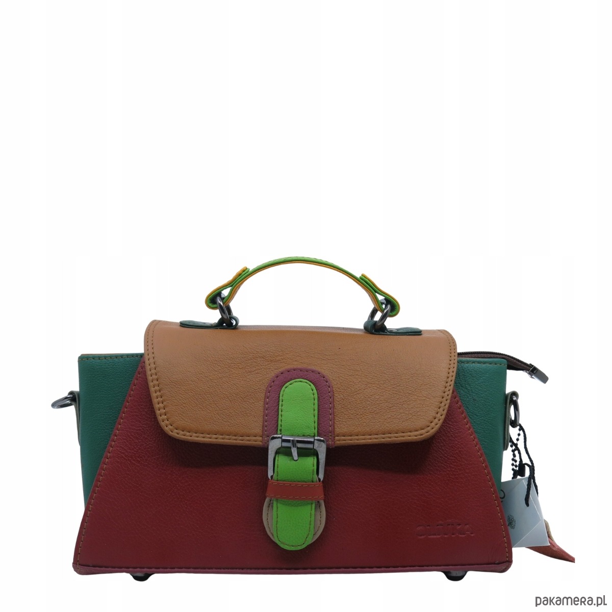 Torebka damska skórzana retro do ręki regulowany pasek elegancka eko OLIVKA