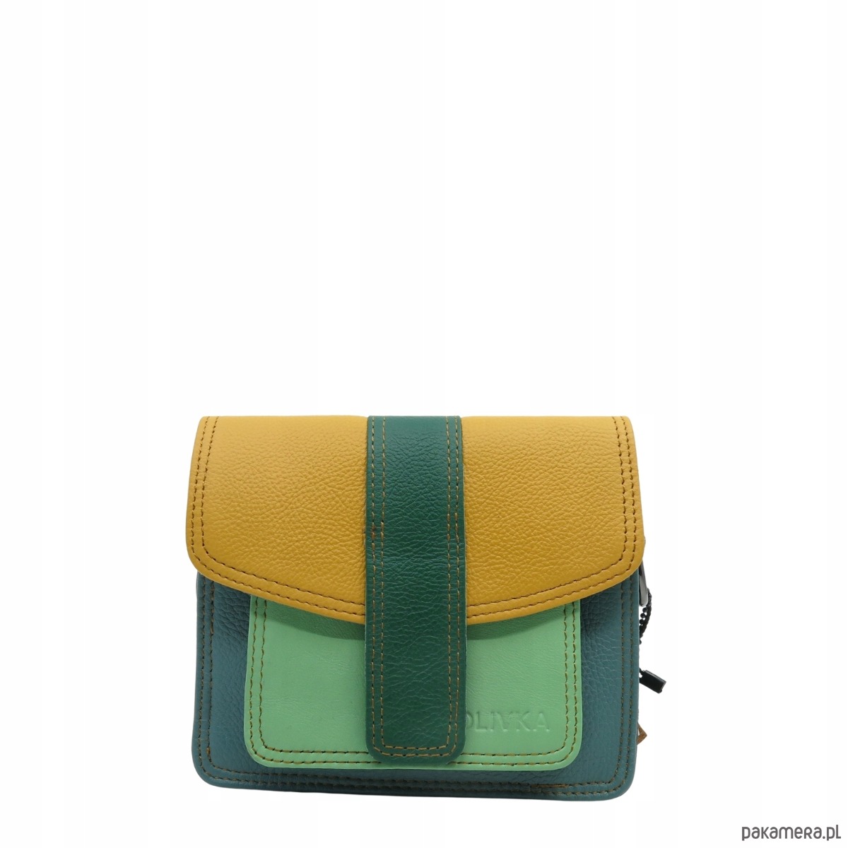 Torebka damska skórzana z klapką regulowany pasek na ramię OLIVKA