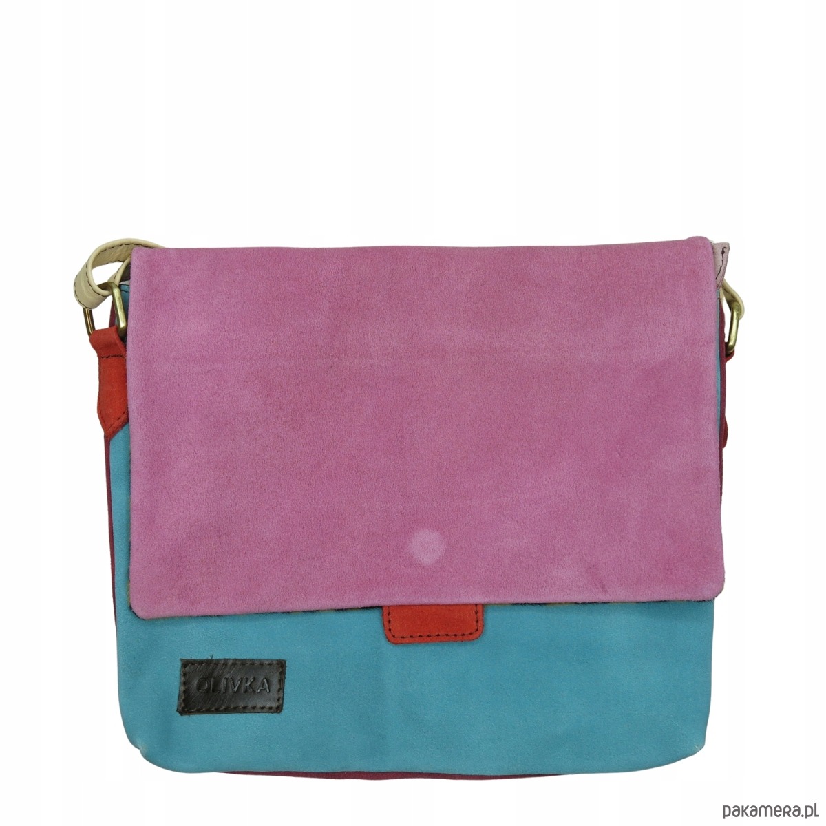 Torebka damska zamszowa dwustronna pojemna na ramię regulowany pasek OLIVKA