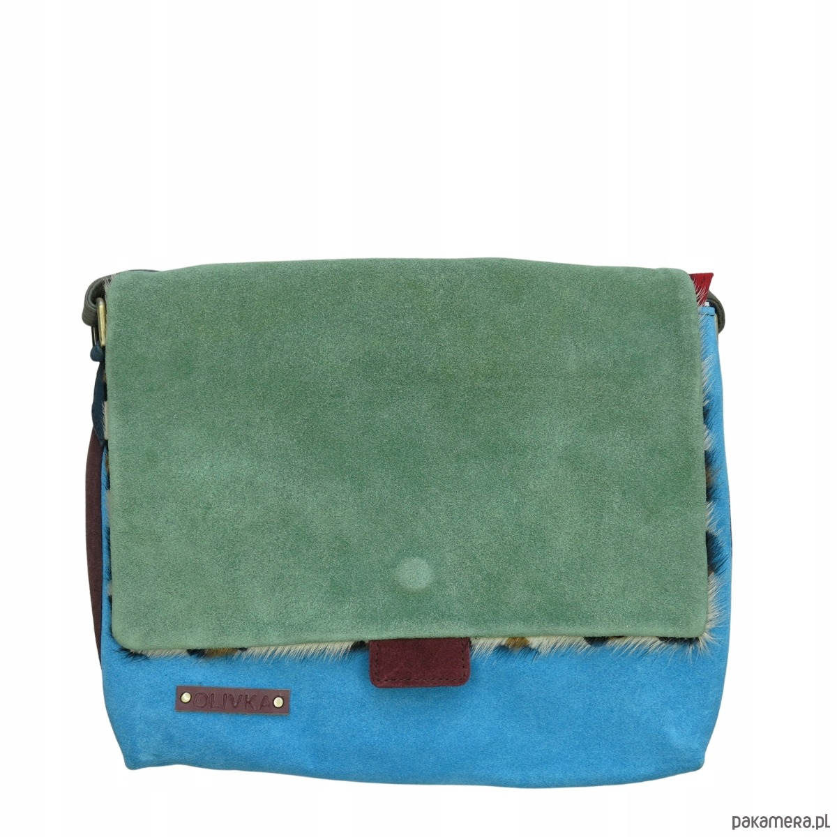 Torebka damska zamszowa dwustronna pojemna na ramię regulowany pasek OLIVKA