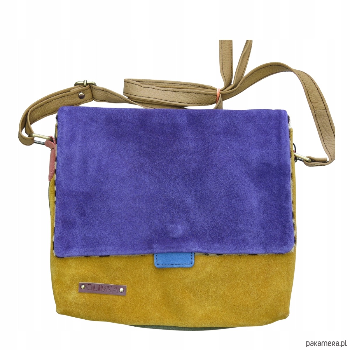 Torebka damska zamszowa dwustronna pojemna na ramię regulowany pasek OLIVKA