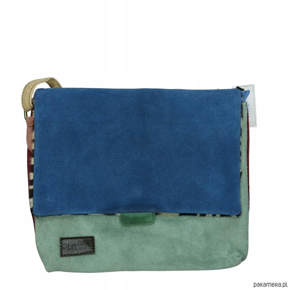 Torebka damska zamszowa dwustronna pojemna na ramię regulowany pasek OLIVKA