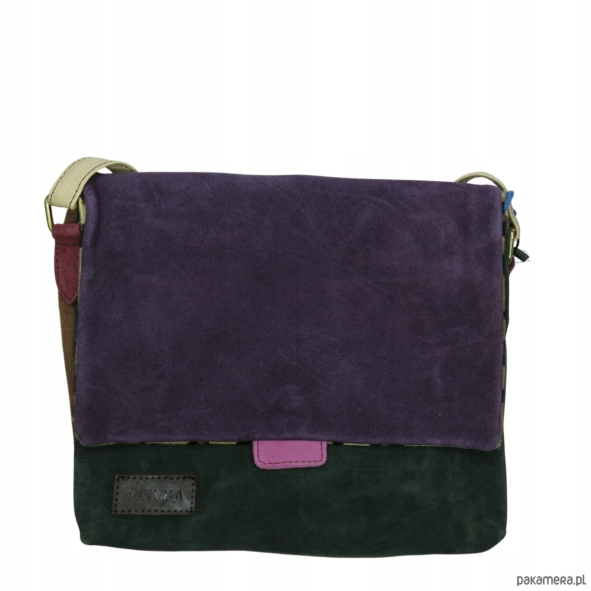 Torebka damska zamszowa dwustronna pojemna na ramię regulowany pasek OLIVKA
