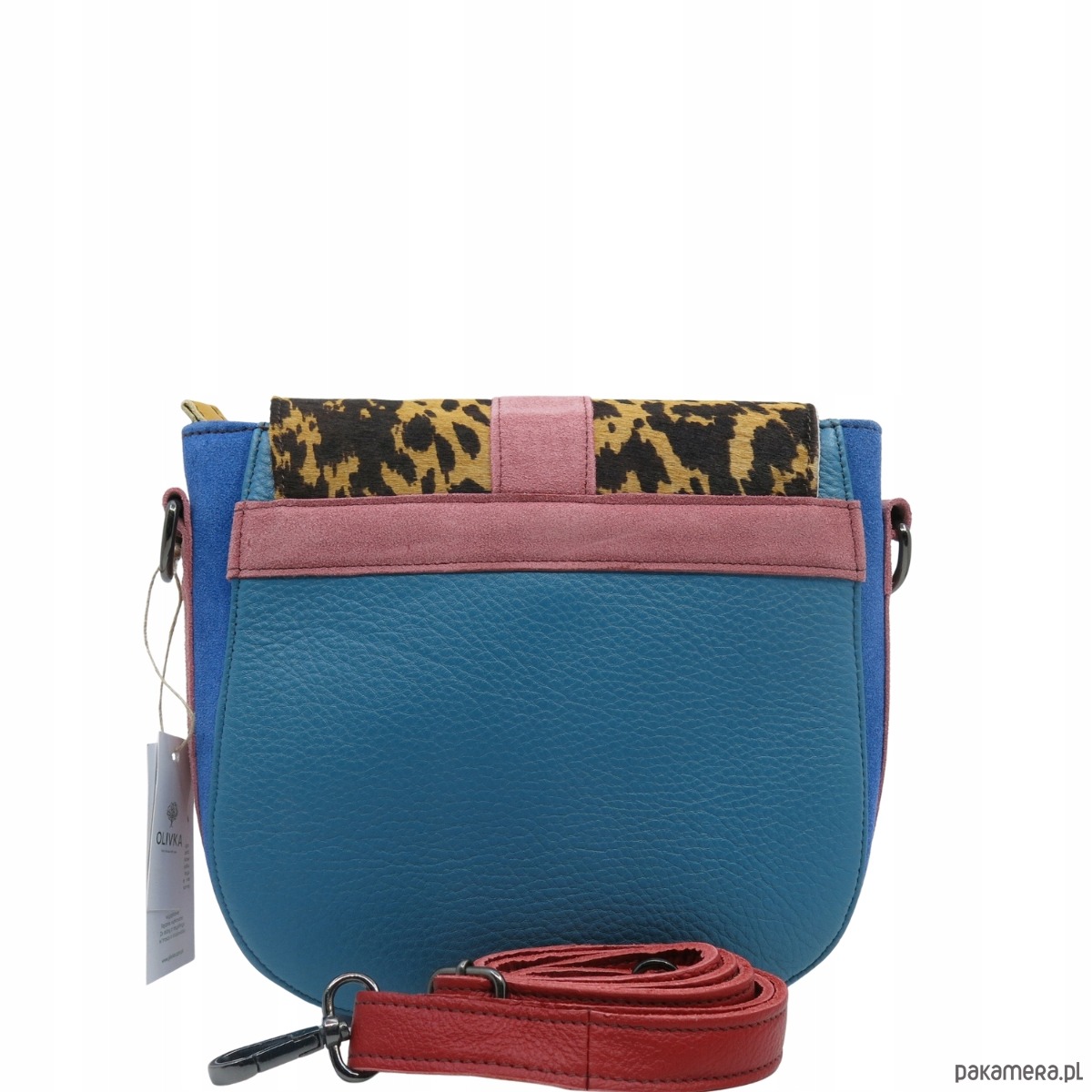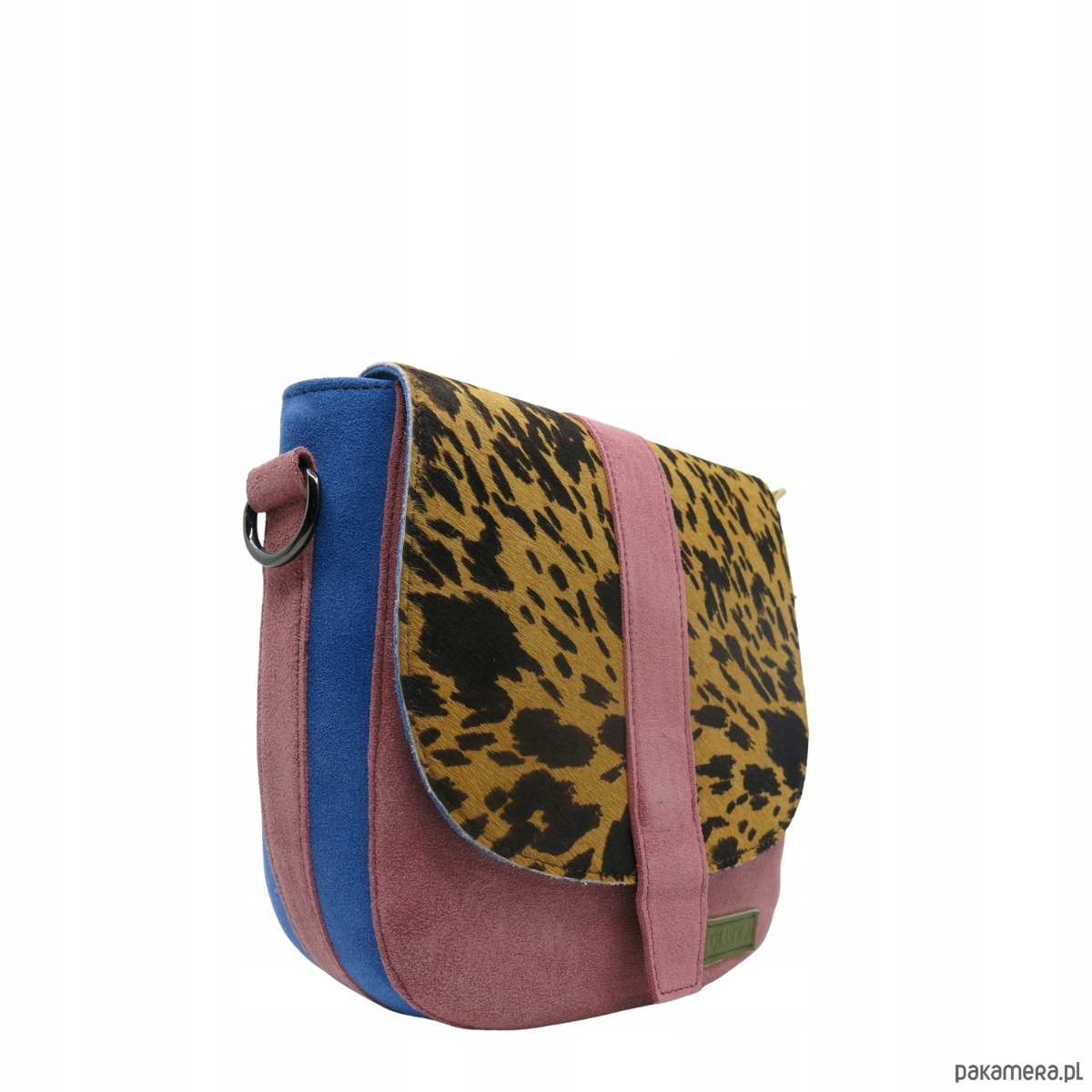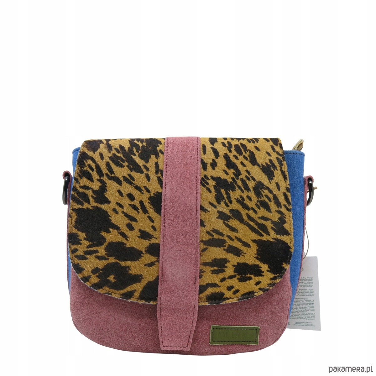 Torebka damska zamszowa na ramię regulowany pasek klapka wzór OLIVKA