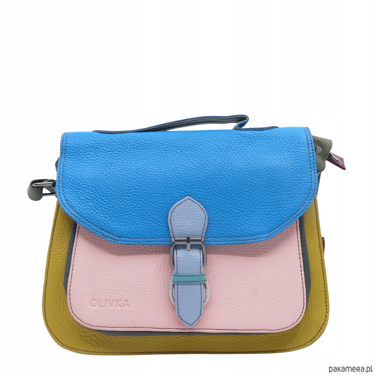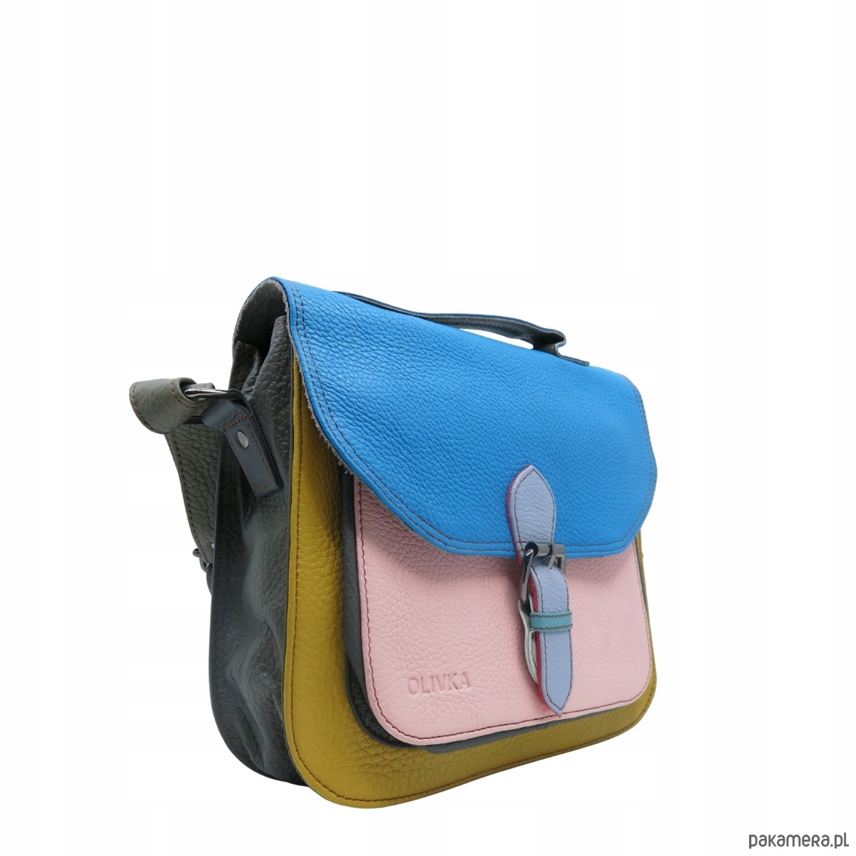 Torebka do ręki na ramię skórzana damska oryginalna kolorowa OLIVKA