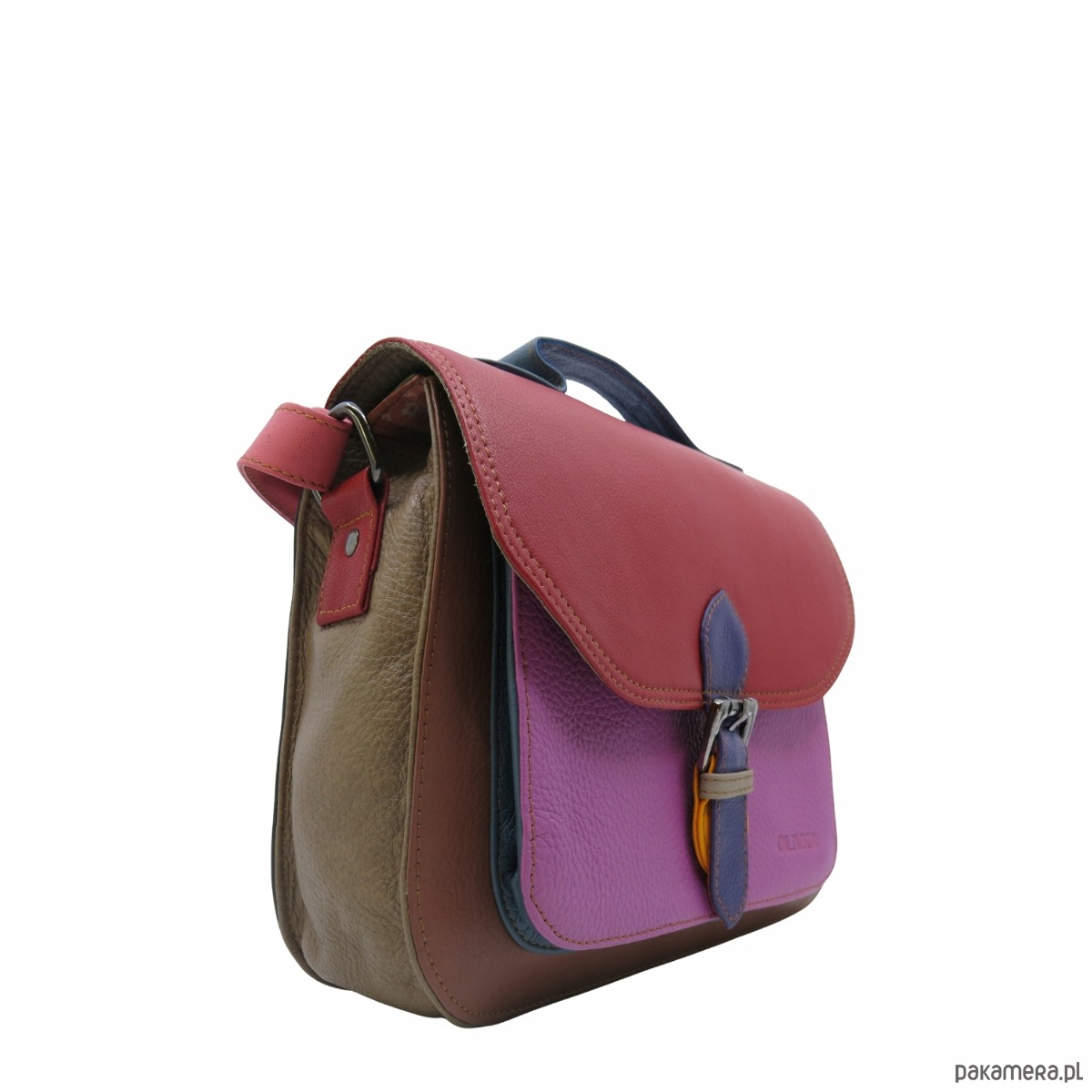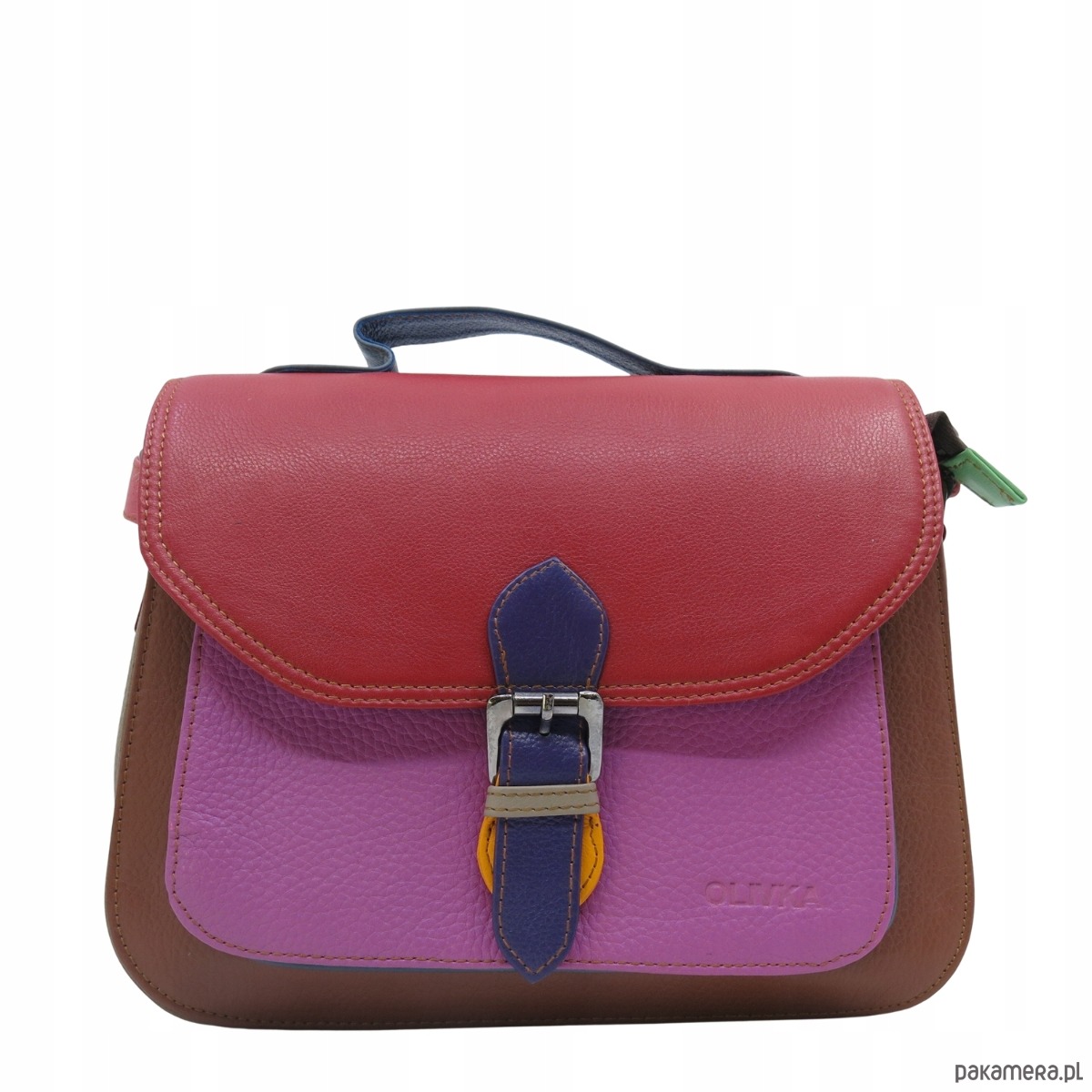 Torebka do ręki na ramię skórzana damska oryginalna kolorowa OLIVKA