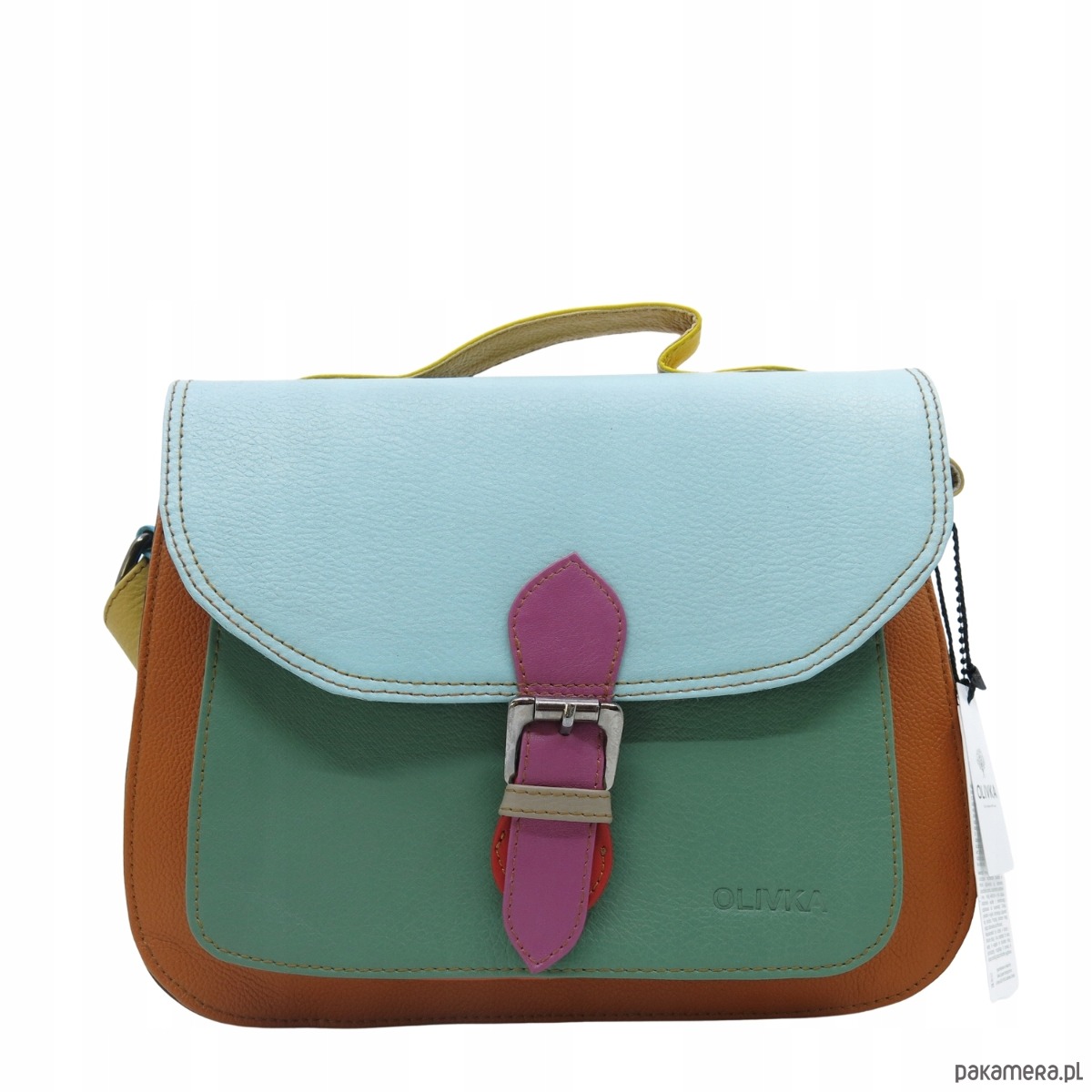 Torebka do ręki na ramię skórzana damska oryginalna kolorowa OLIVKA