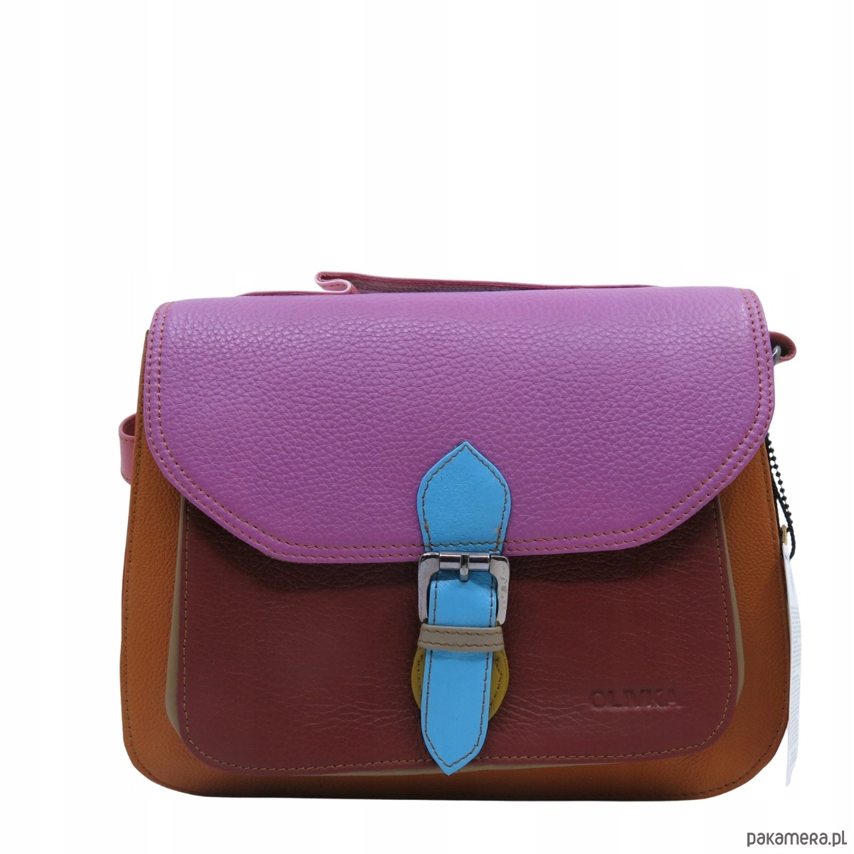 Torebka do ręki na ramię skórzana damska oryginalna kolorowa OLIVKA