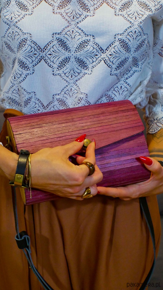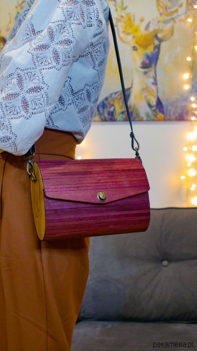 Ta torebka przyciąga spojrzenia i podkreśla Twoją wyjątkowość. Drewno nadaje niepowtarzalny, naturalny rysunek, sprawiając, że każdy detal nabiera znaczenia.