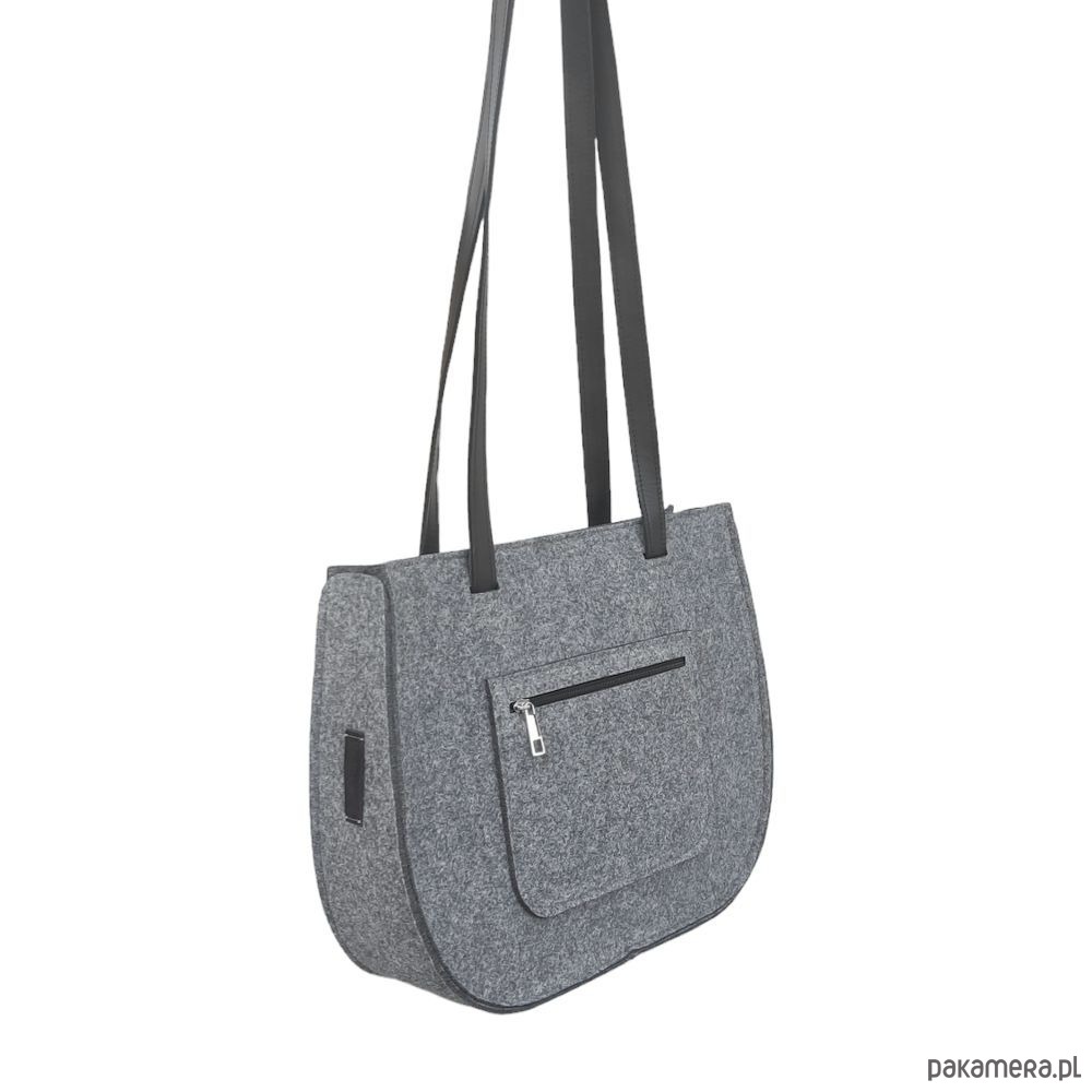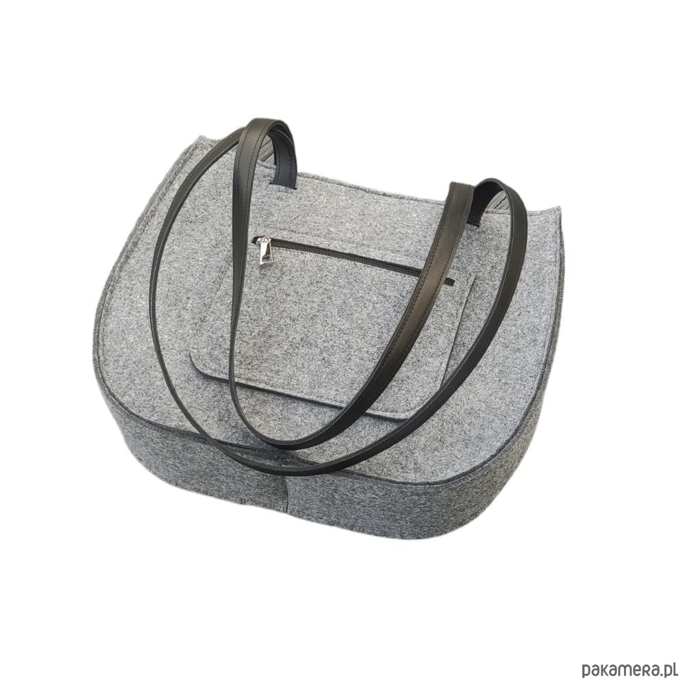 Idealna torebka z filcu na co dzień, wykonana z filcu grubości 4mm w kolorze szarym. Torebka ma solidne, skórzane paski, które dodają elegancji i sprawiają, że torebka jest wygodna w noszeniu. Dodatkowo posiada praktyczną kieszonkę na zamek, w której można przechowywać drobne przedmioty. Doskonała propozycja dla kobiet ceniących sobie styl i praktyczność.