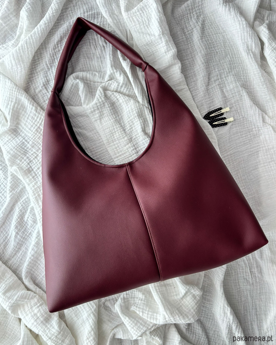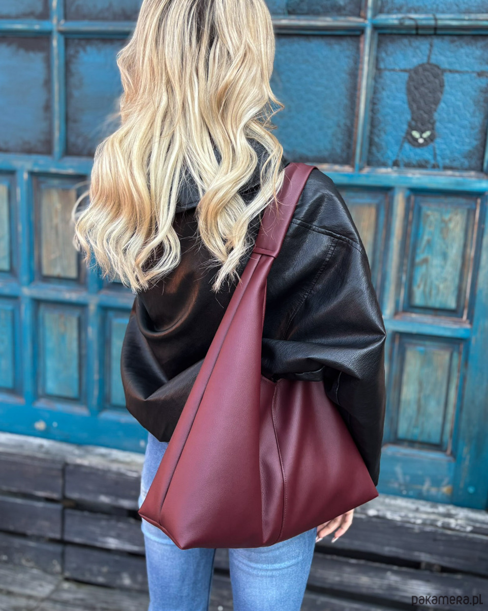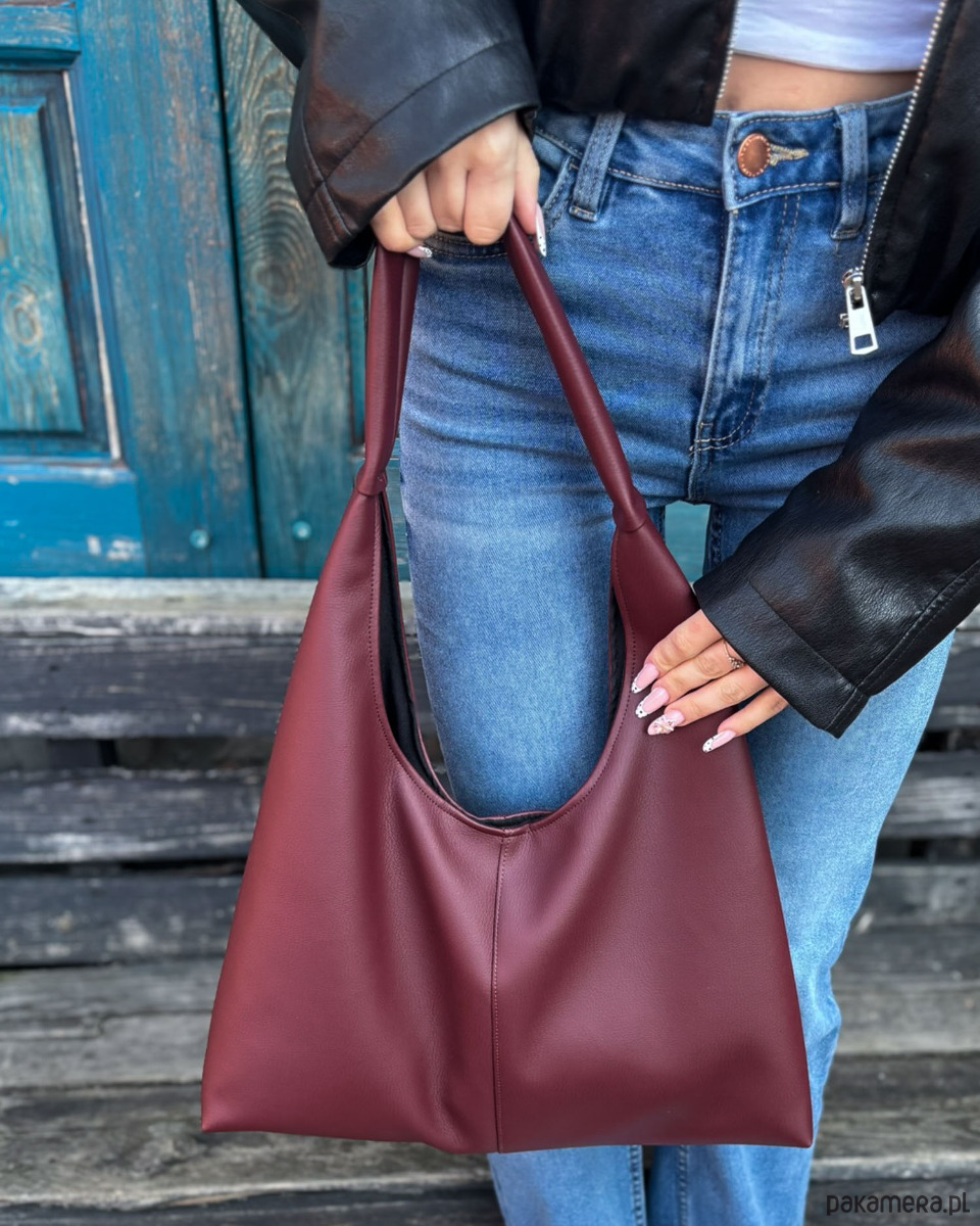 Bordowa torebka hobo handmade w głębokim odcieniu Burgundy to propozycja dla kobiet, które szukają wyrazistego, a zarazem ponadczasowego dodatku. Jej plastyczna forma mistrzowsko dopasowuje się do sylwetki, oferując zaskakującą pojemność.