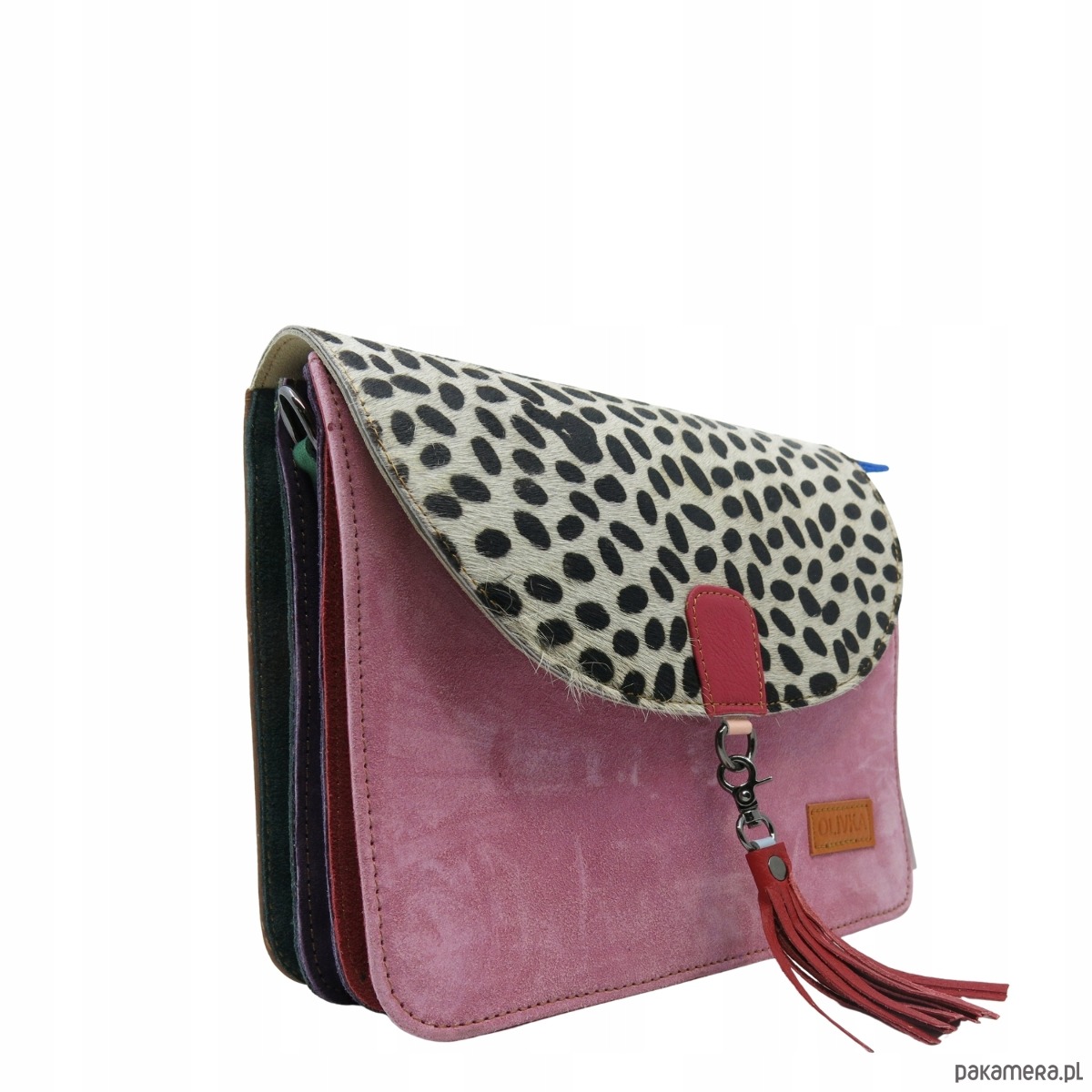 Torebka klasyczna damska zamszowa odpinany chwost brelok OLIVKA
