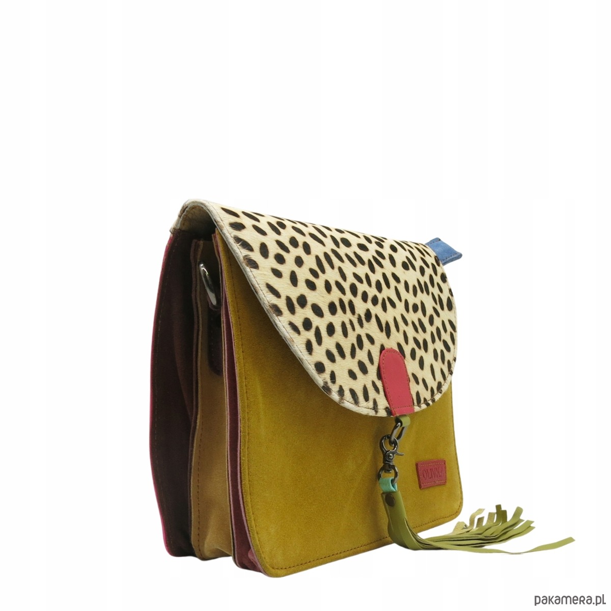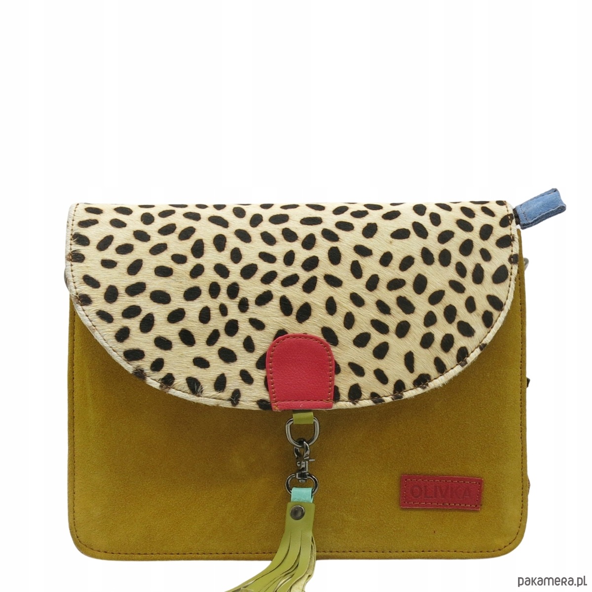 Torebka klasyczna damska zamszowa odpinany chwost brelok OLIVKA