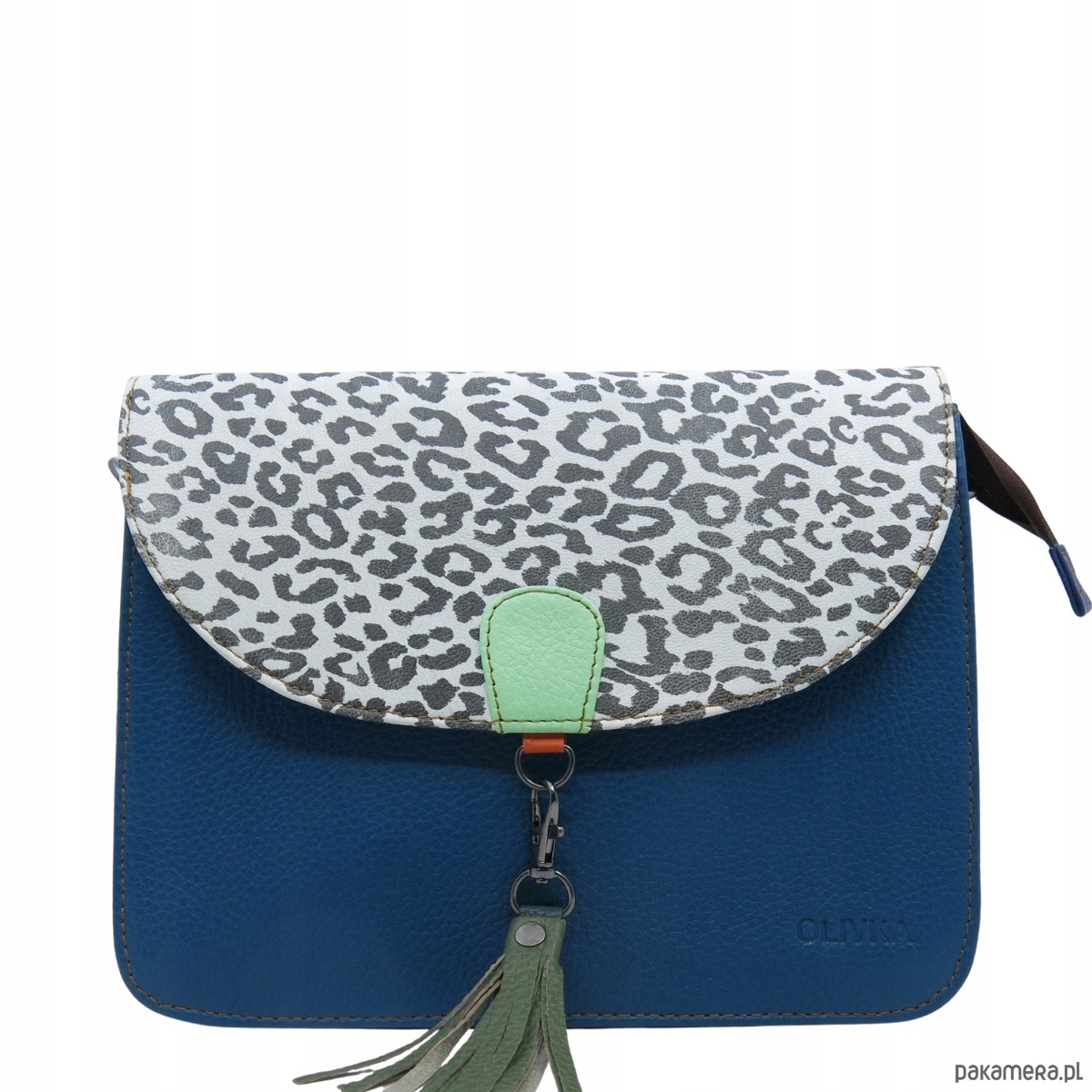 Torebka klasyczna damska zamszowa odpinany chwost brelok OLIVKA
