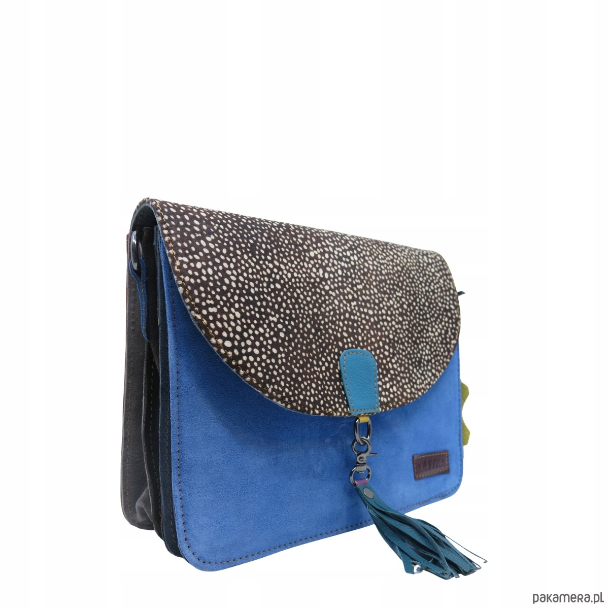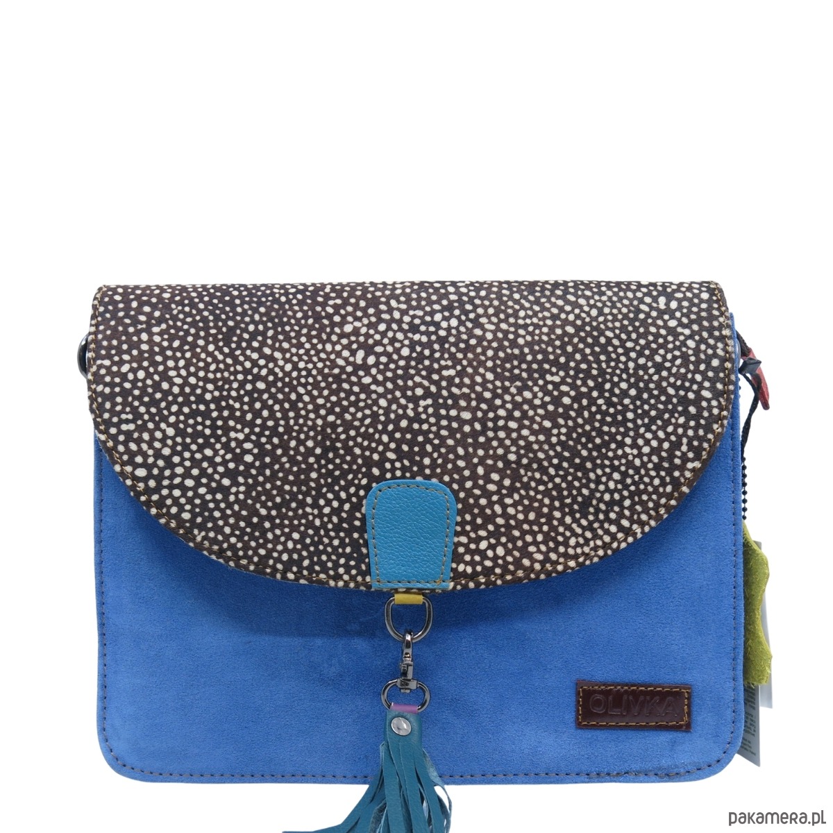 Torebka klasyczna damska zamszowa odpinany chwost brelok OLIVKA