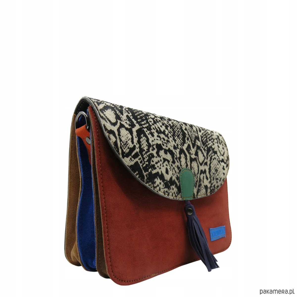 Torebka klasyczna elegancka skórzana zamszowa elegancka klapka wzór OLIVKA