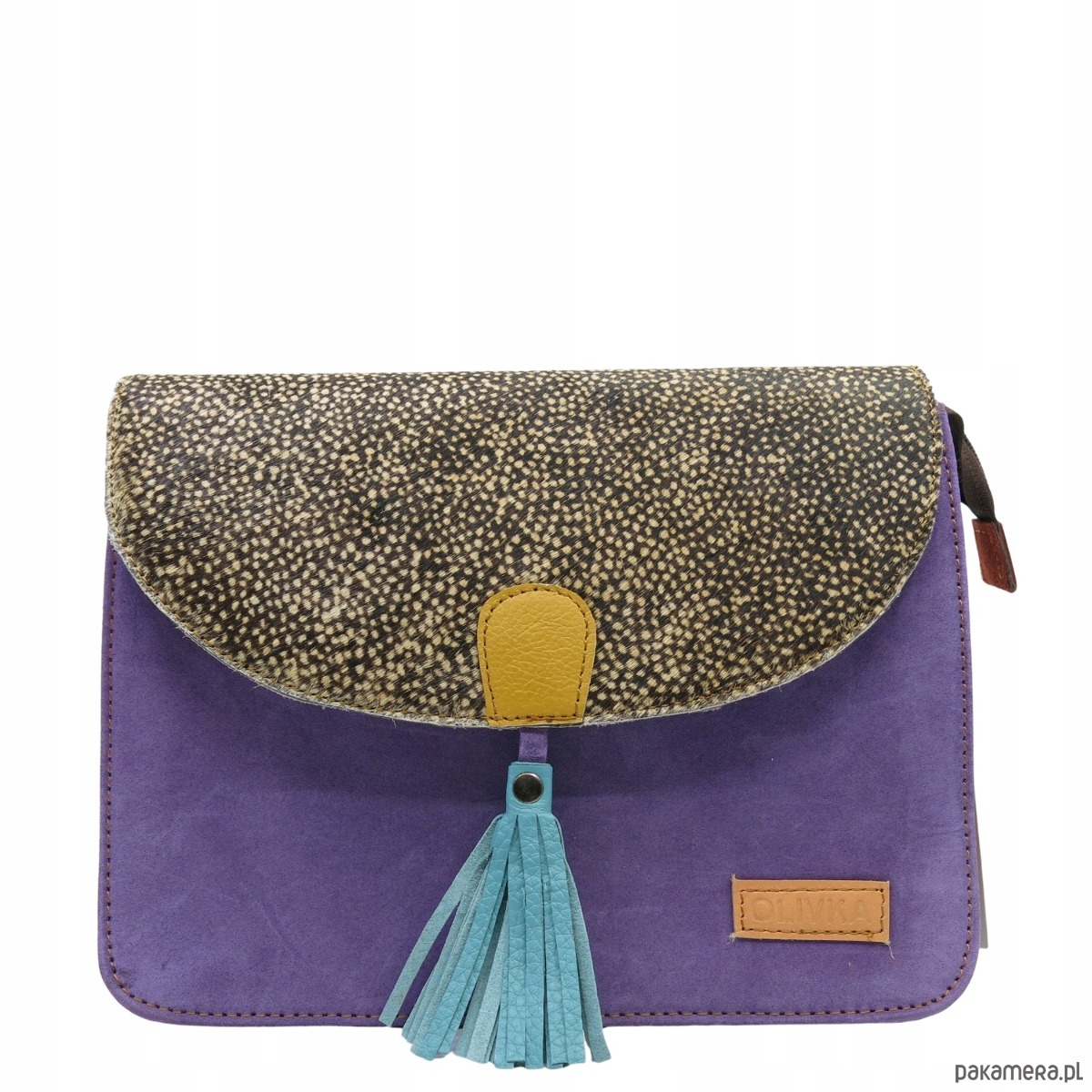 Torebka klasyczna elegancka skórzana zamszowa elegancka klapka wzór OLIVKA