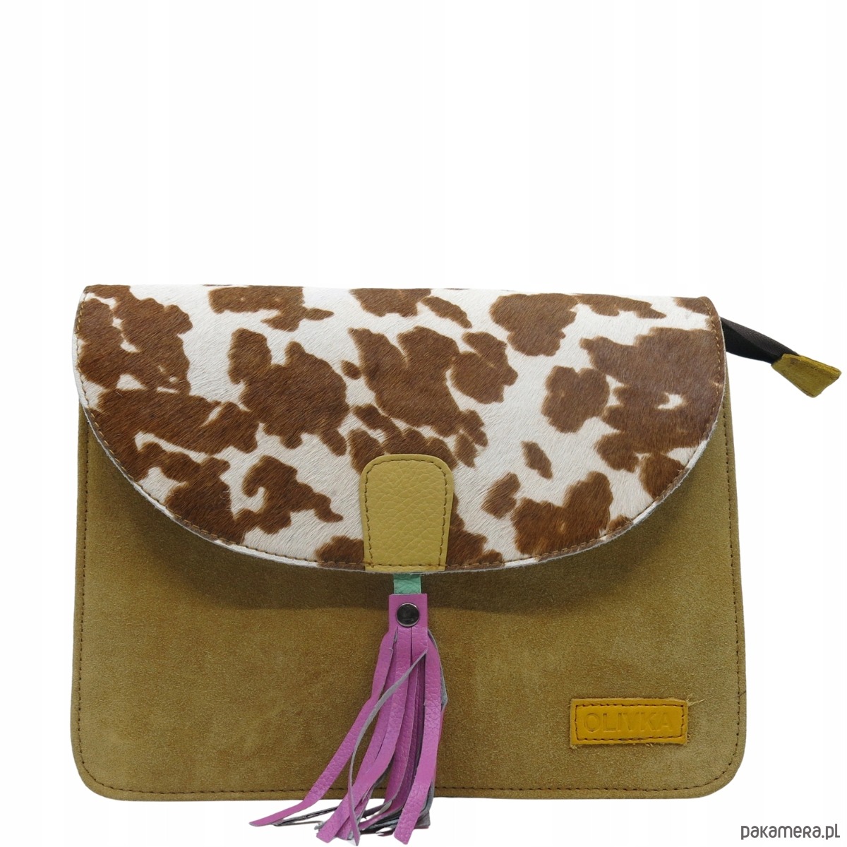 Torebka klasyczna elegancka skórzana zamszowa elegancka klapka wzór OLIVKA