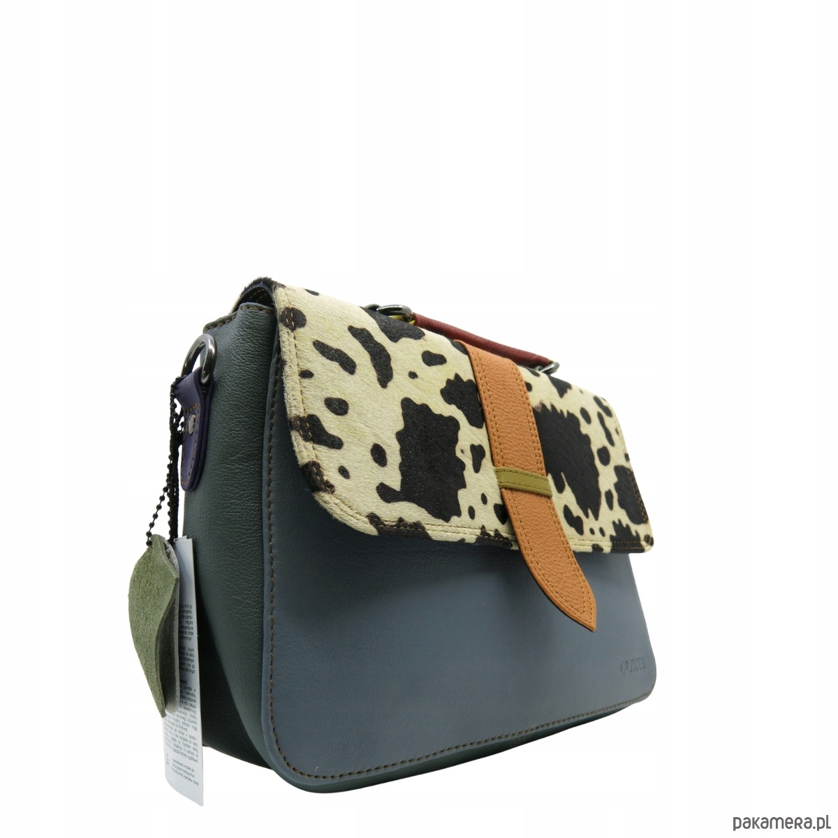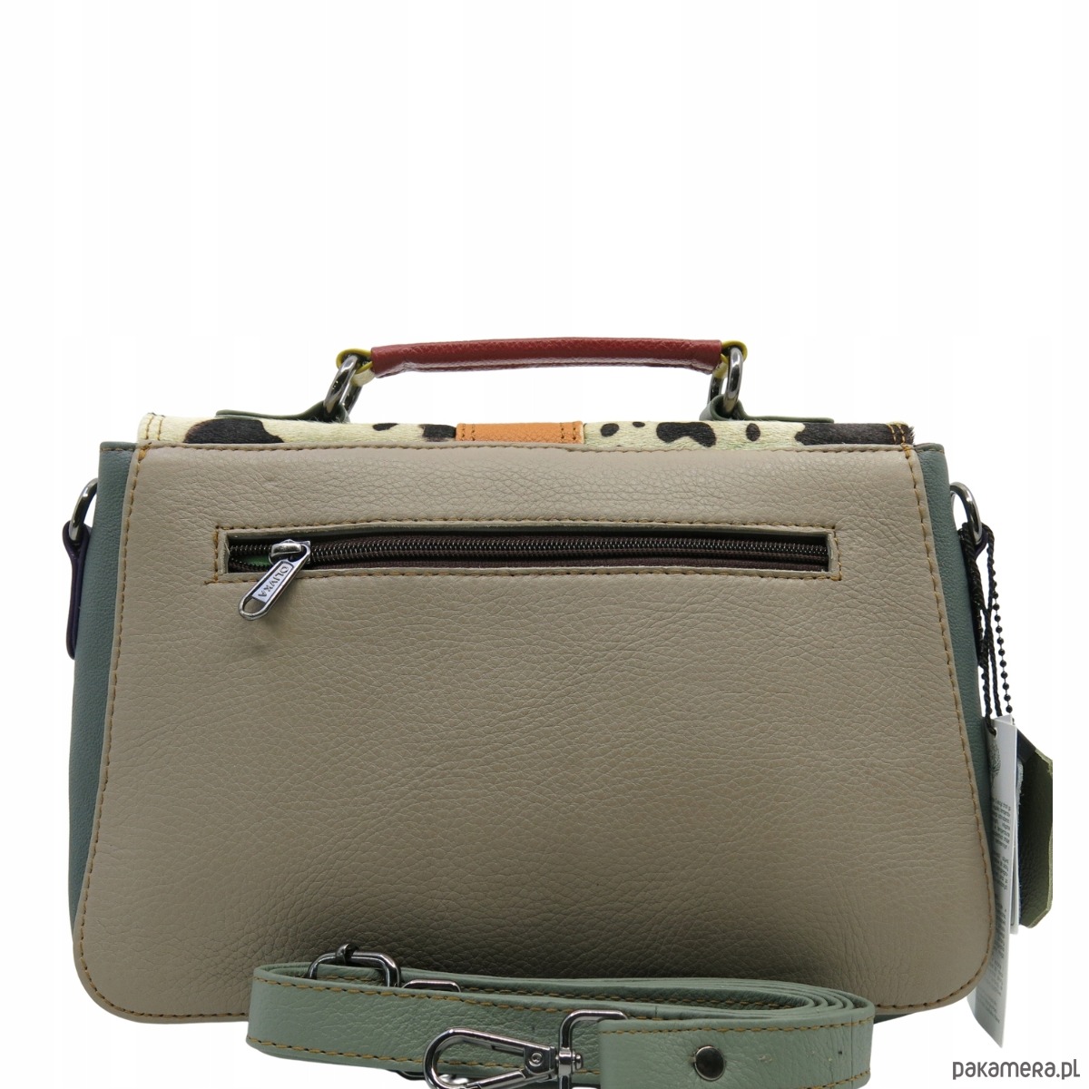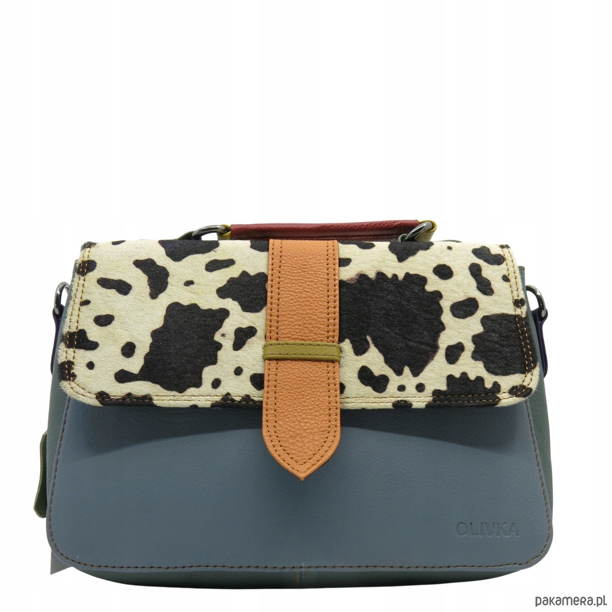 Torebka klasyczna skórzana na ramię klapka wzór, pojemna, kolorowa OLIVKA