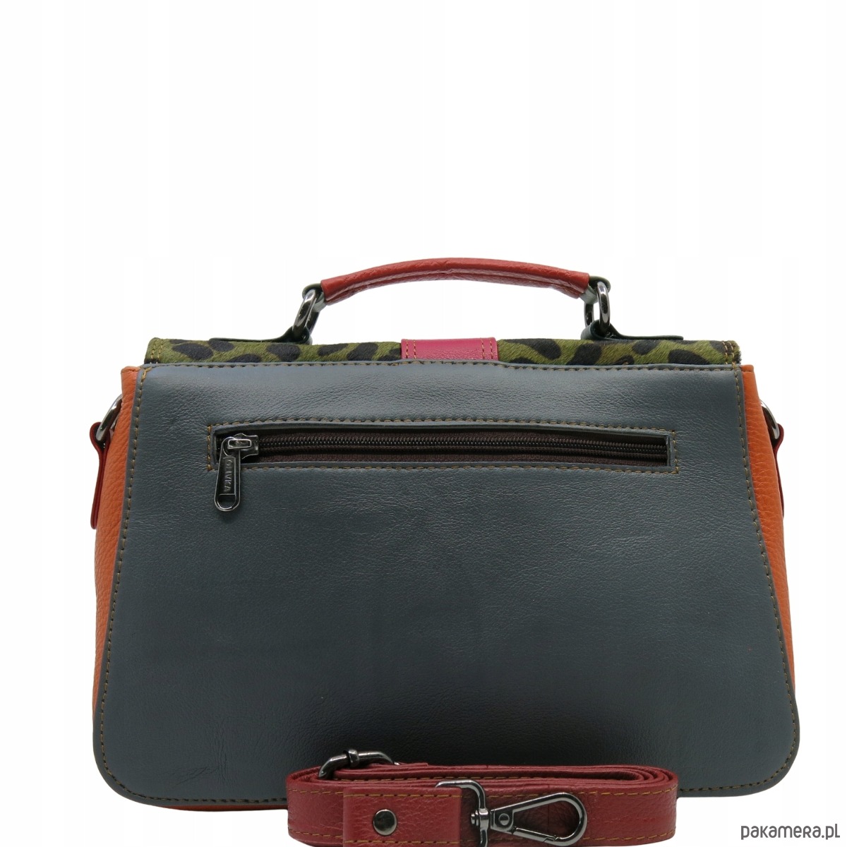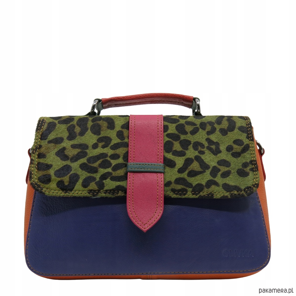 Torebka klasyczna skórzana na ramię klapka wzór, pojemna, kolorowa OLIVKA
