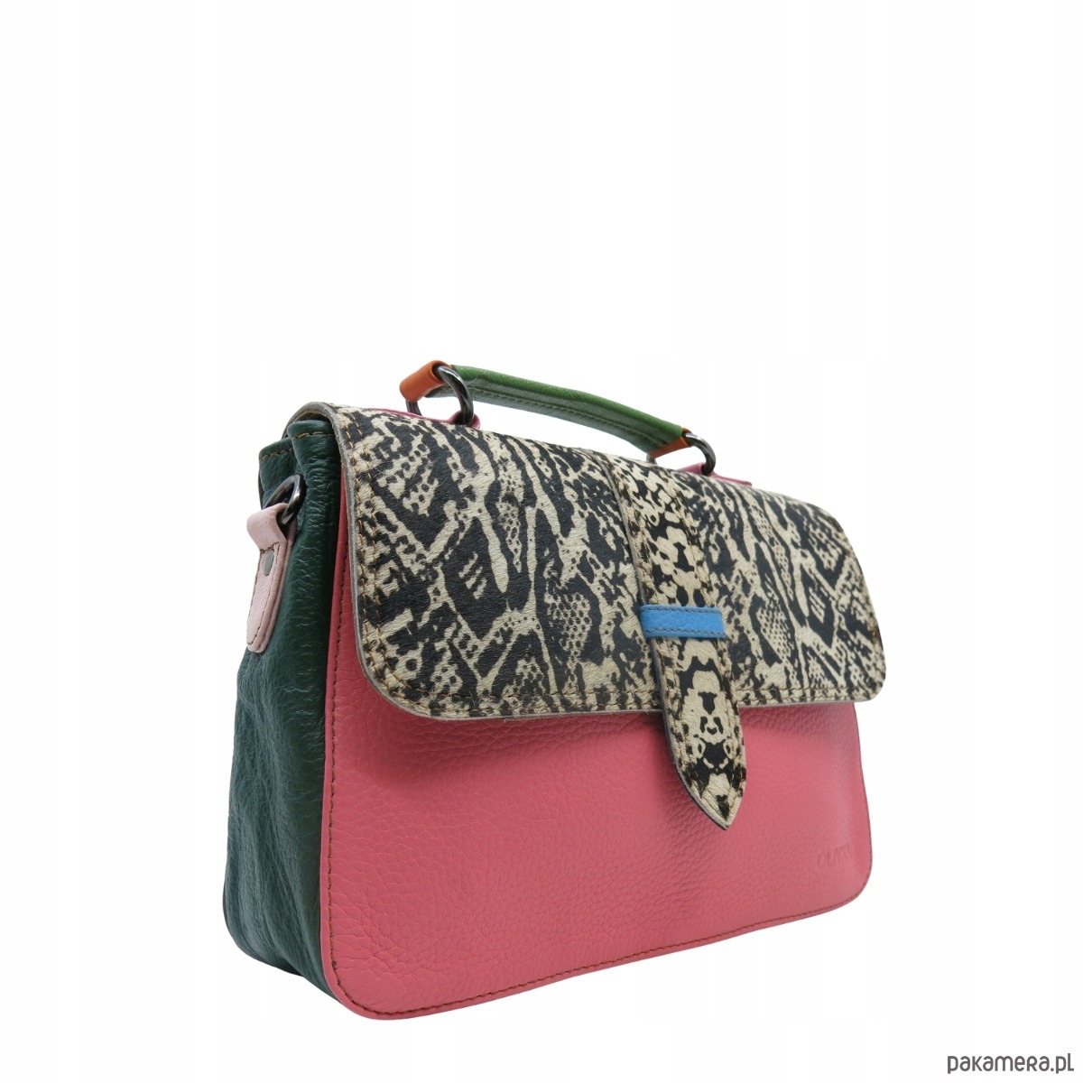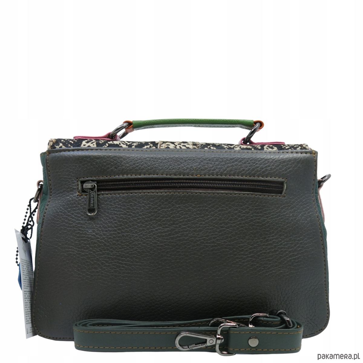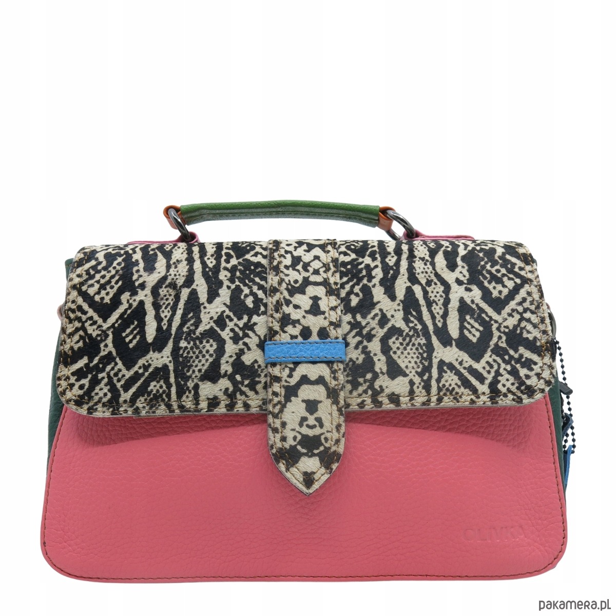 Torebka klasyczna skórzana na ramię pasek na klapce oryginalna OLIVKA
