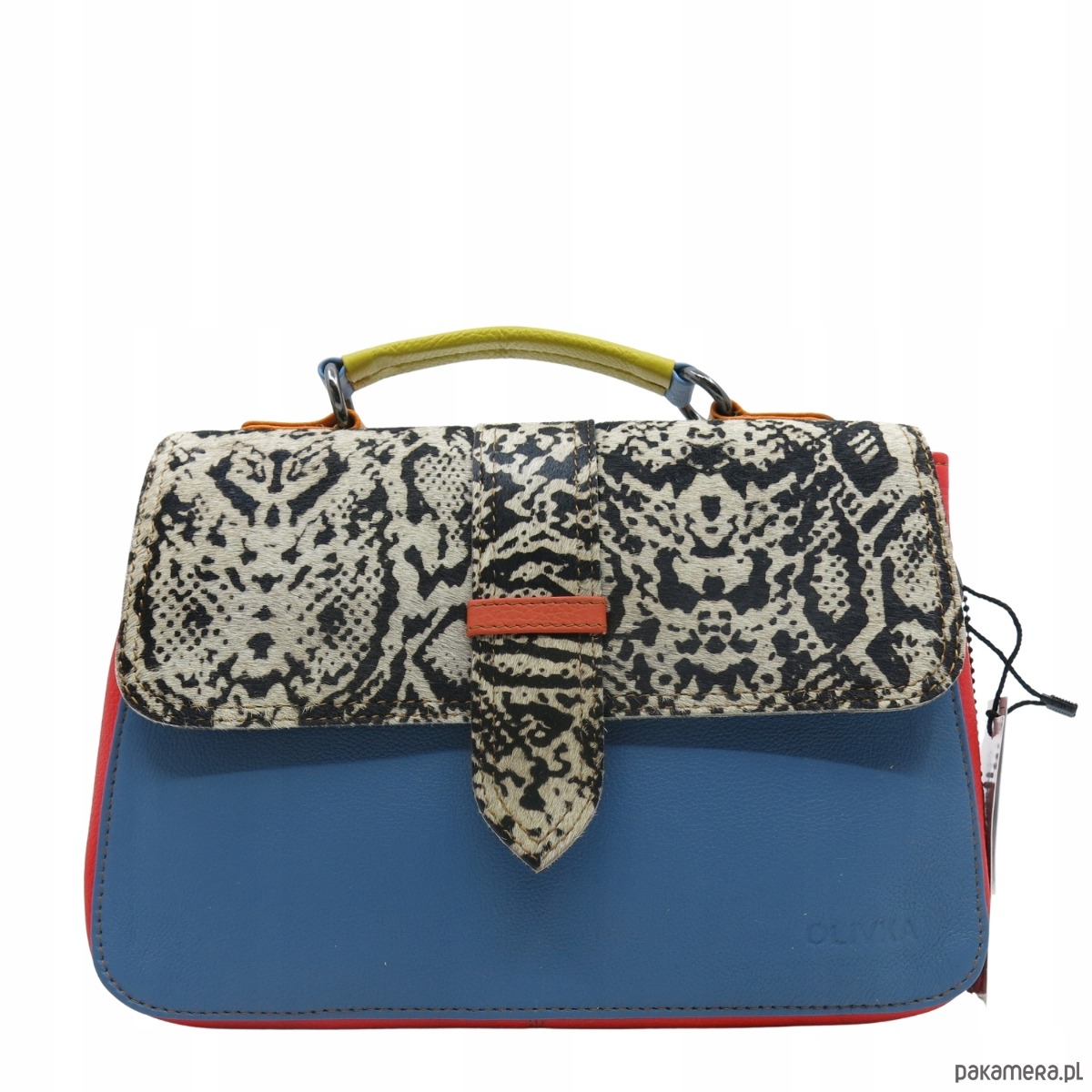 Torebka klasyczna skórzana na ramię pasek na klapce oryginalna OLIVKA