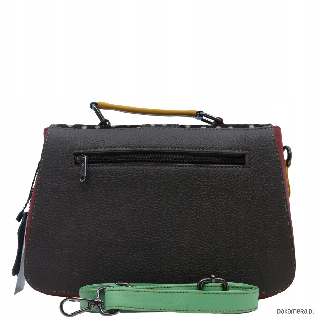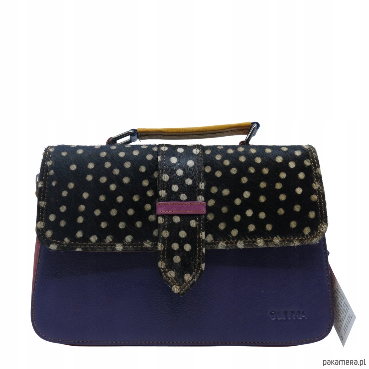 Torebka klasyczna skórzana na ramię pasek na klapce oryginalna OLIVKA