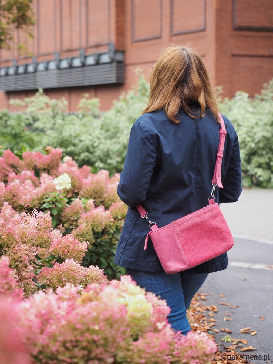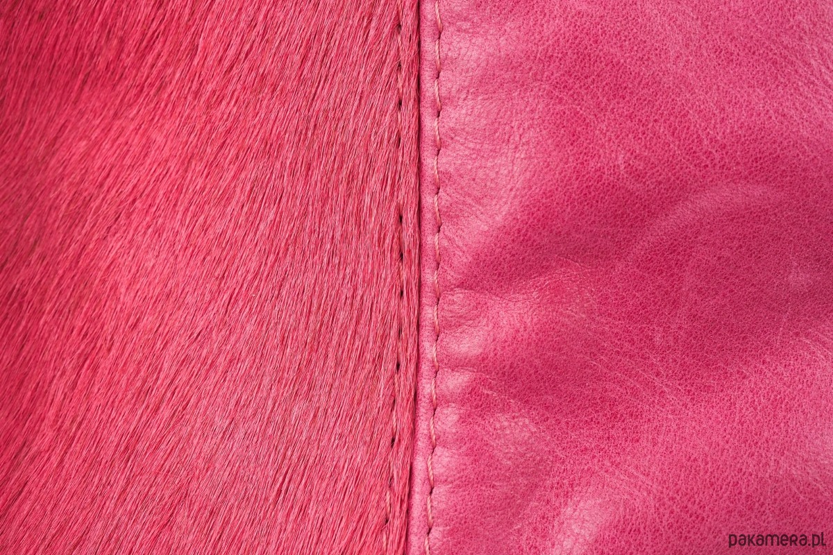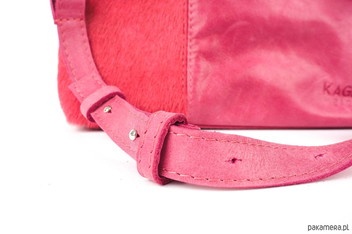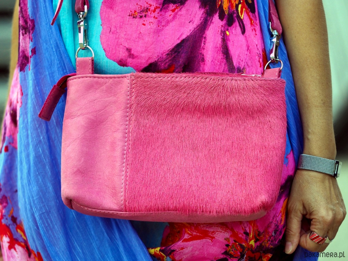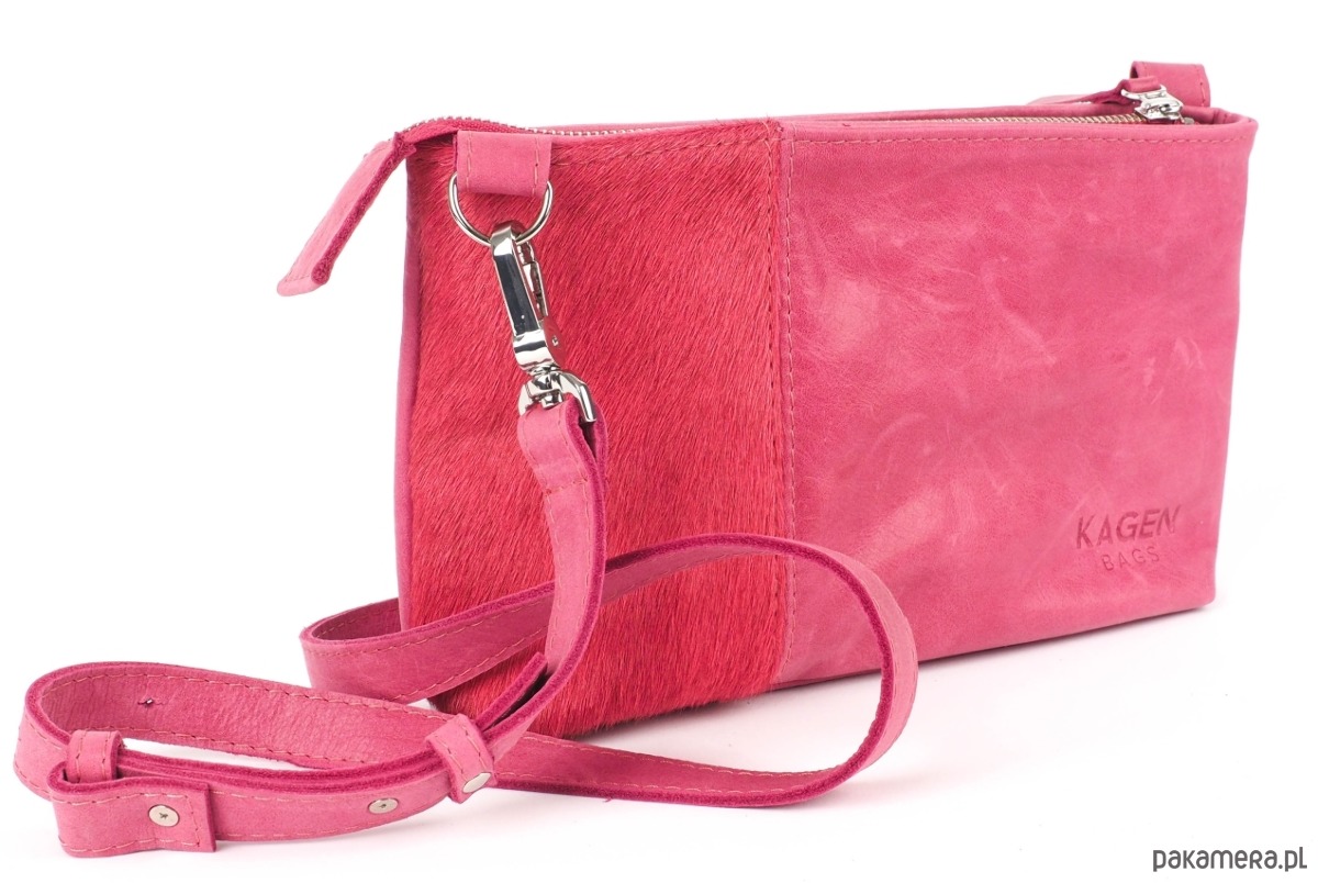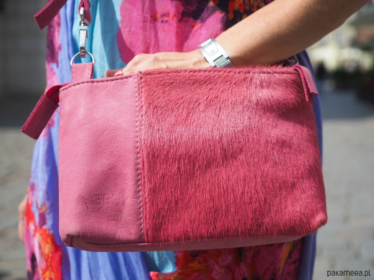 Torebka wykonana ręcznie z naturalnej skóry vintage z efektem postarzenia. Niewielka, zapinana na suwak, którą można nosić przez ramię na regulowanym pasku lub po jego wypięciu – jako typową kopertówkę. Podszewka w kolorze bordowym. Uroczy, drapieżny model z elementami skóry z włosiem w kolorze różowym. Zmieści wszystko, co niezbędne na co dzień lub na wieczorne wyjścia. Fantastyczny dodatek do każdej stylizacji, ożywia i zachwyca!