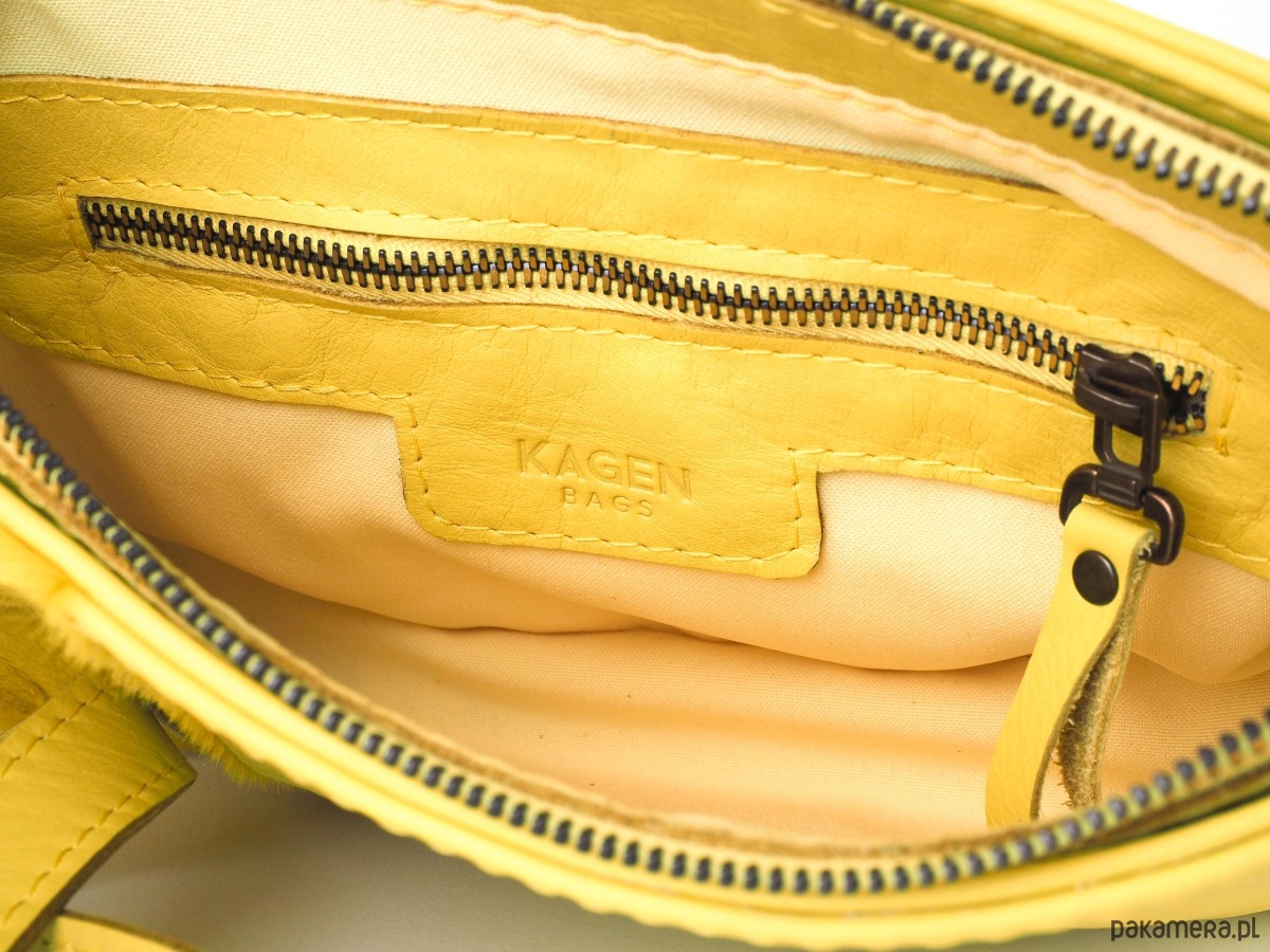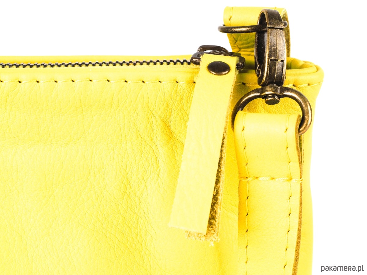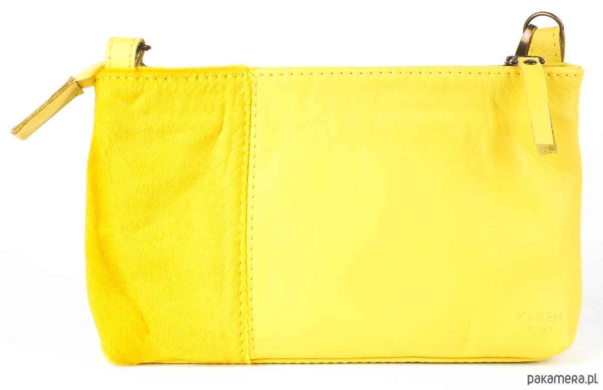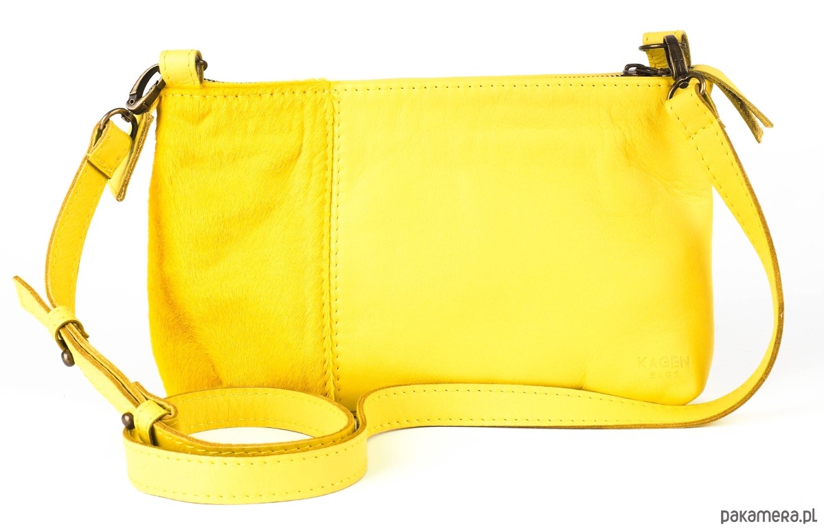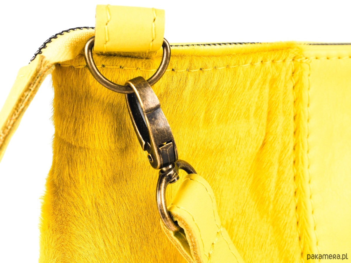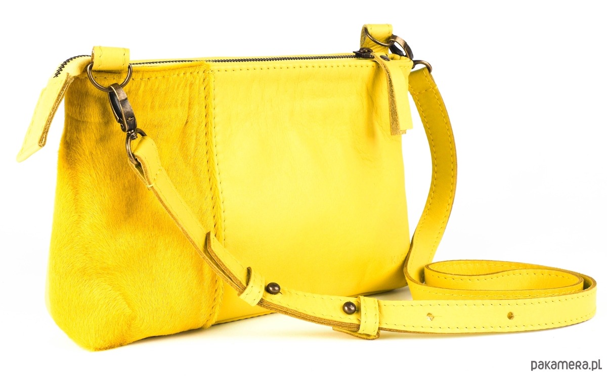 Ręcznie wykonana torebka z naturalnej skóry w kolorze żółtym - cytrynowym. Niewielka, zapinana na suwak, którą można nosić przez ramię na regulowanym pasku lub po jego wypięciu – jako typową kopertówkę. Podszewka w kolorze żółtym. Intrygujący, drapieżny model z elementami skóry z włosiem w kolorze żółtym. Zmieści wszystko, co niezbędne na co dzień lub na wieczorne wyjścia. Fantastyczny dodatek do każdej stylizacji, ożywia i zachwyca! Idealna na lato!!!