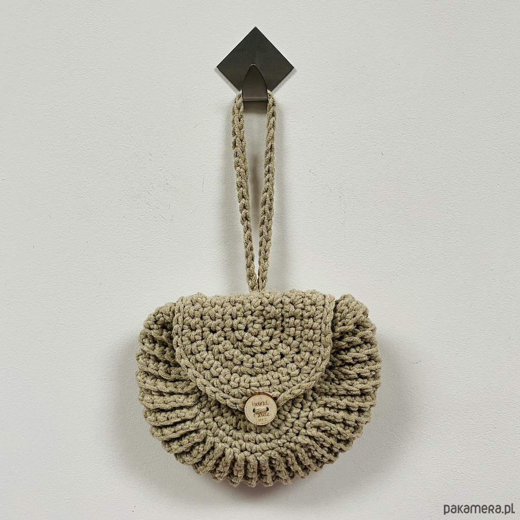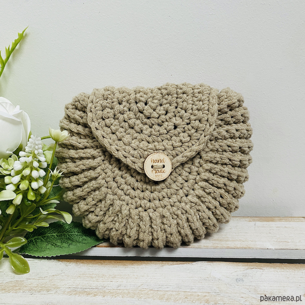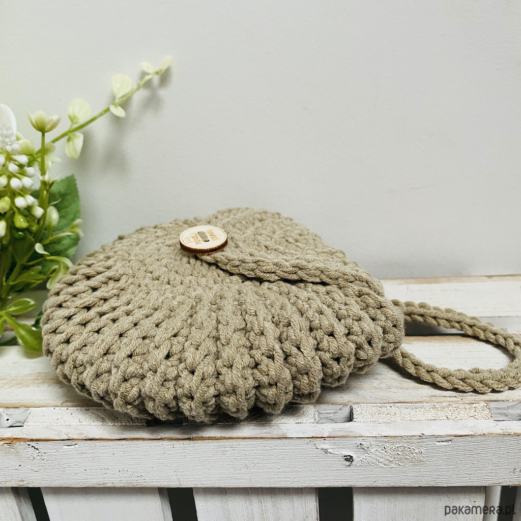 Torebkę wykonałam na szydełku z przyjemnej w dotyku mieszanki włóczki bawełniano–akrylowej.