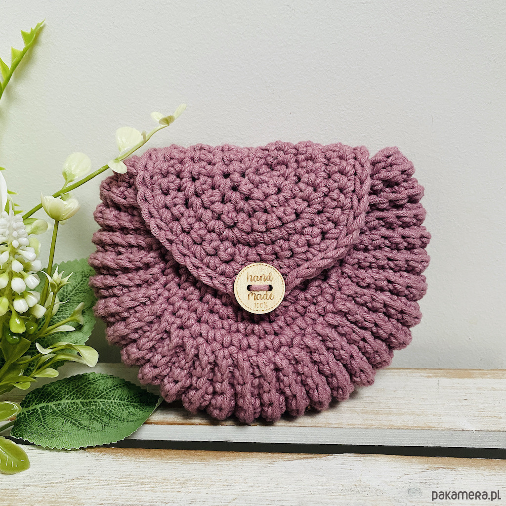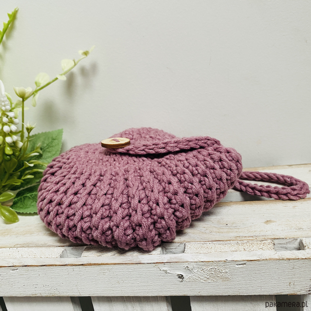 Torebkę wykonałam na szydełku z przyjemnej w dotyku mieszanki włóczki bawełniano–akrylowej.