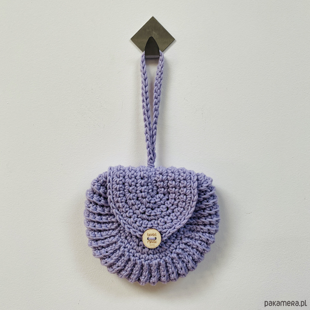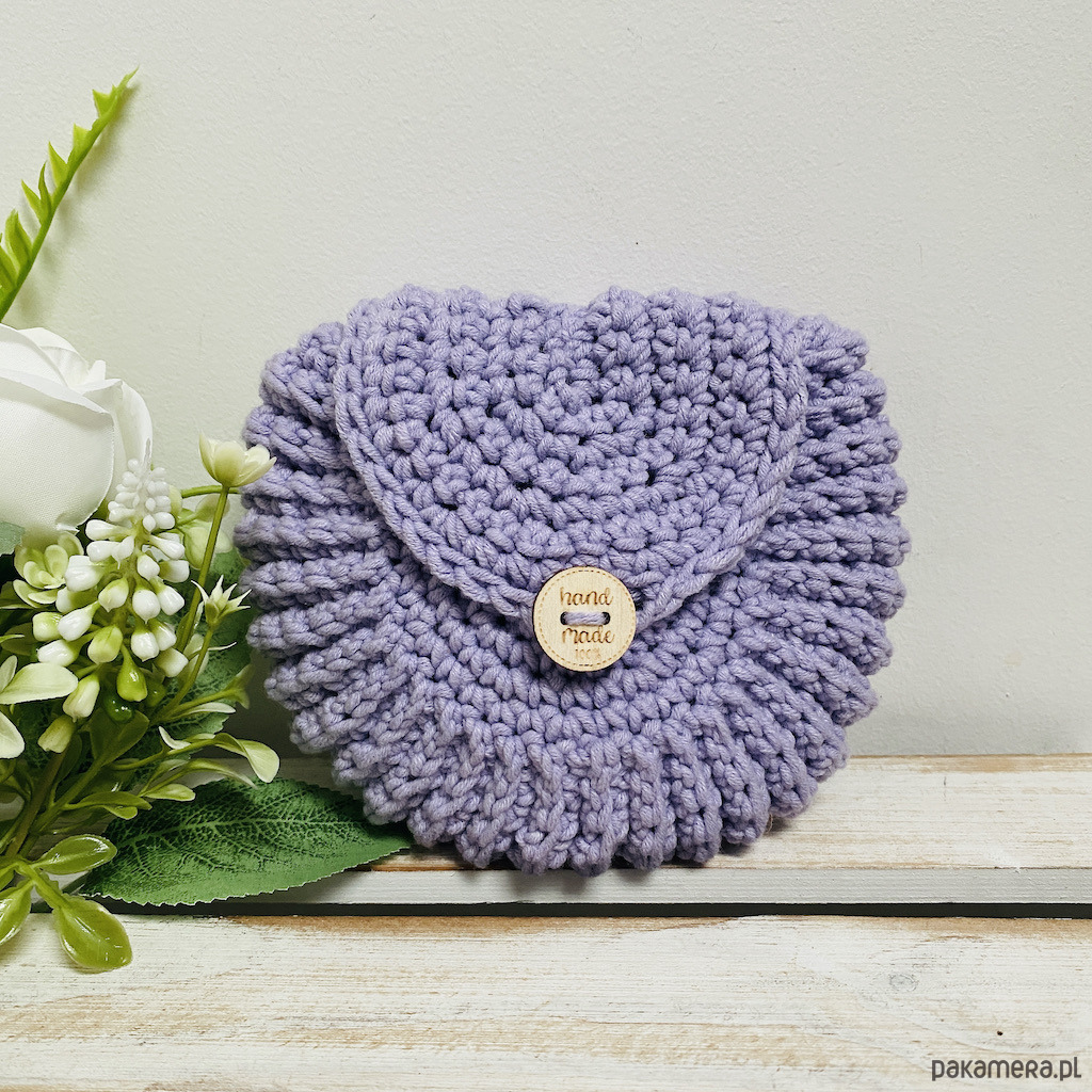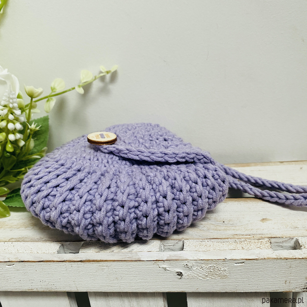 Torebkę wykonałam na szydełku z przyjemnej w dotyku mieszanki włóczki bawełniano–akrylowej.
