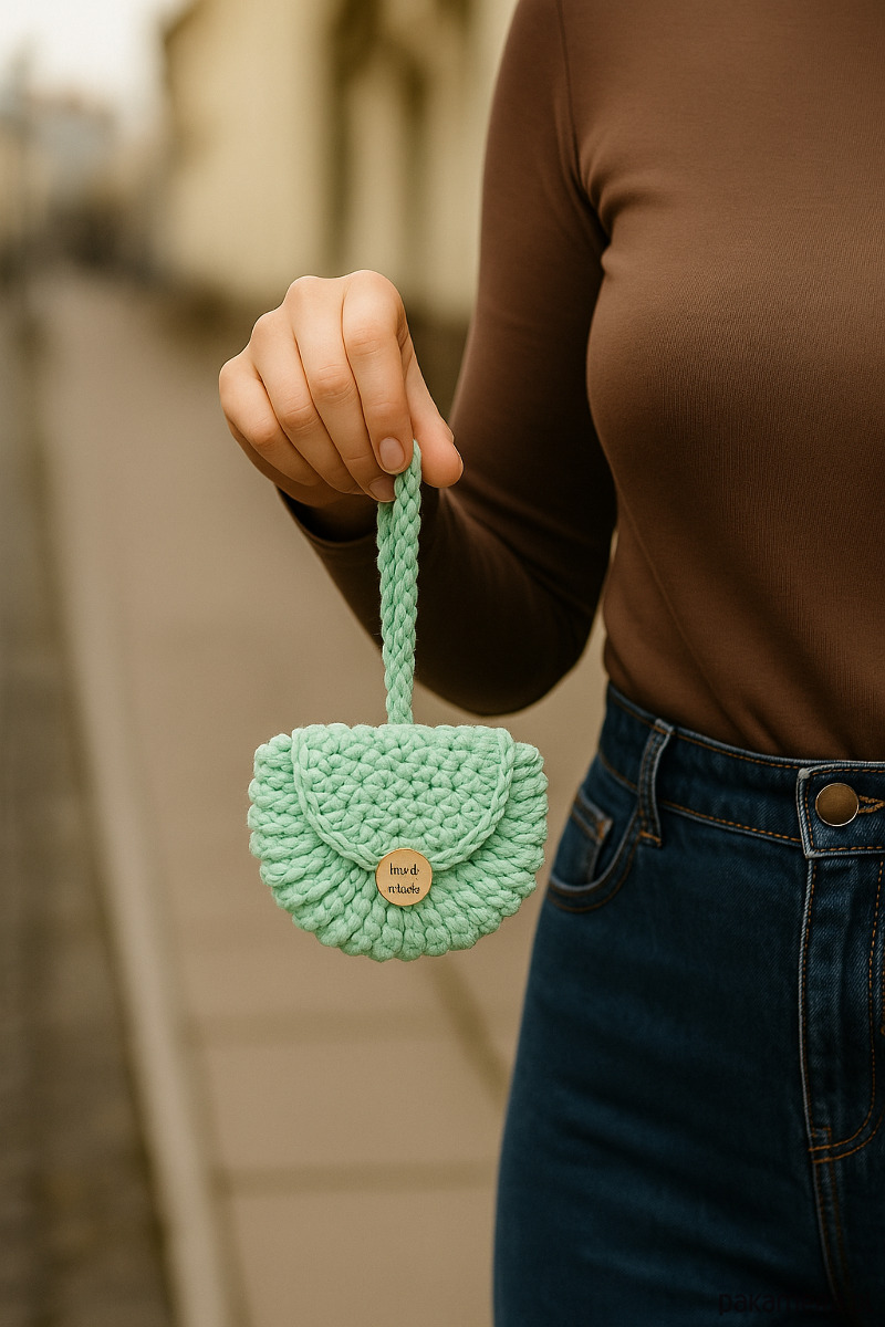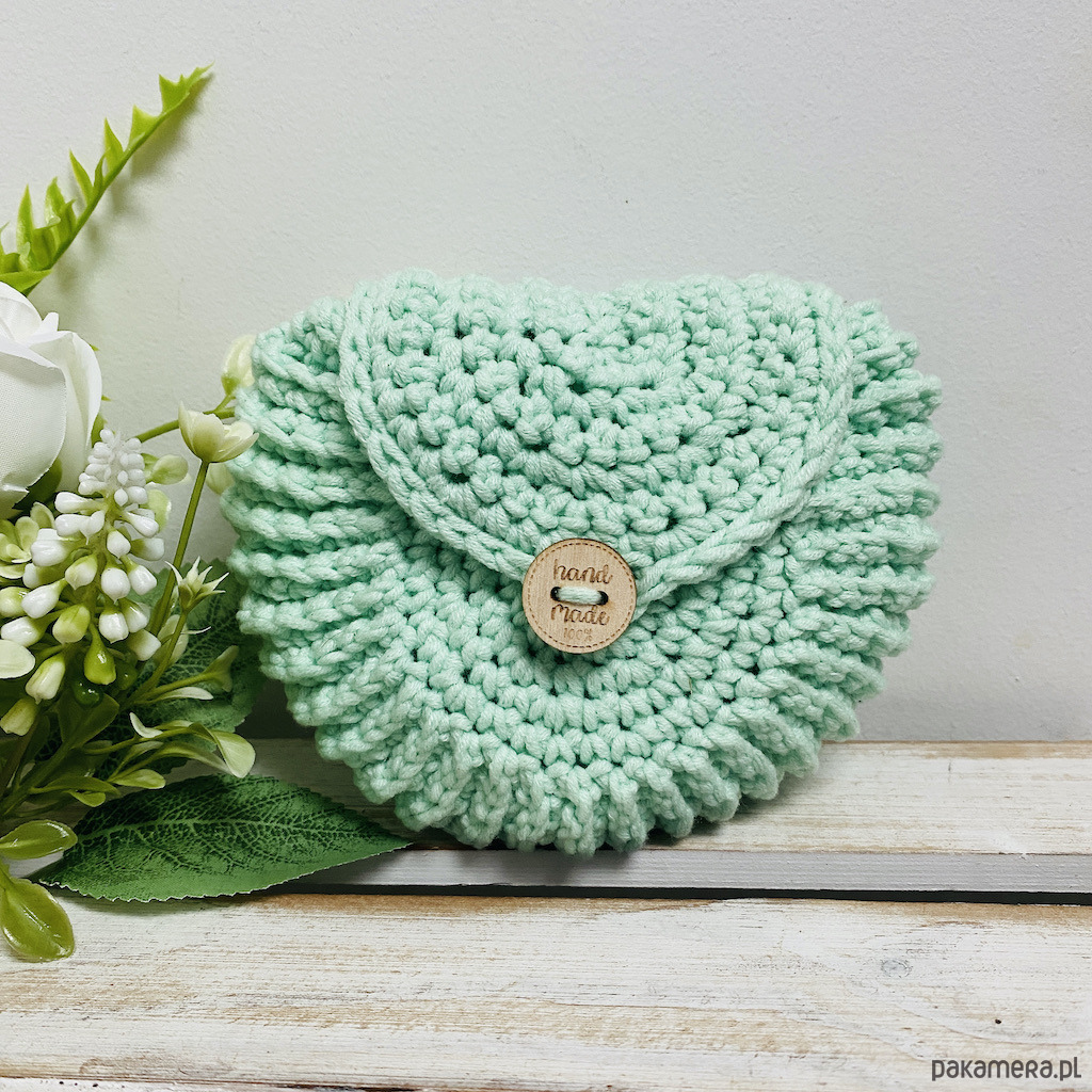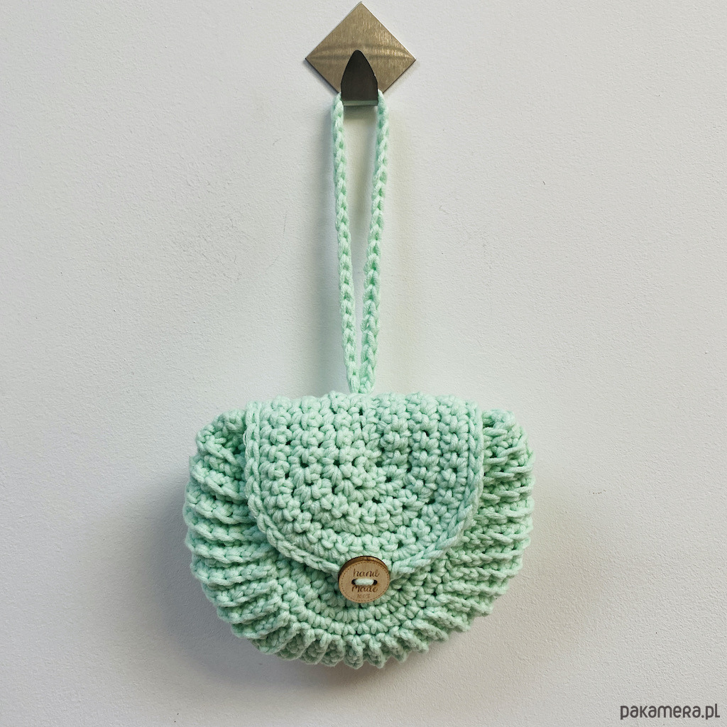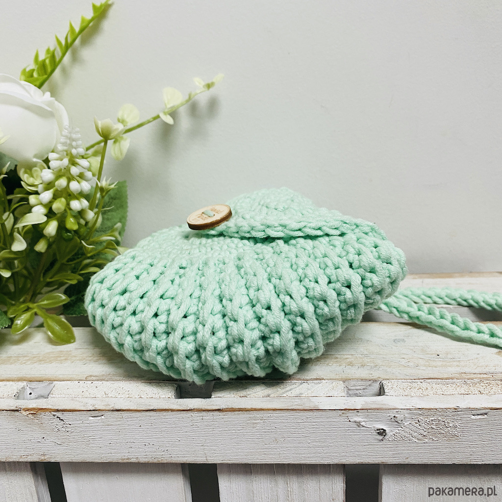 Torebkę wykonałam na szydełku z przyjemnej w dotyku mieszanki włóczki bawełniano–akrylowej.