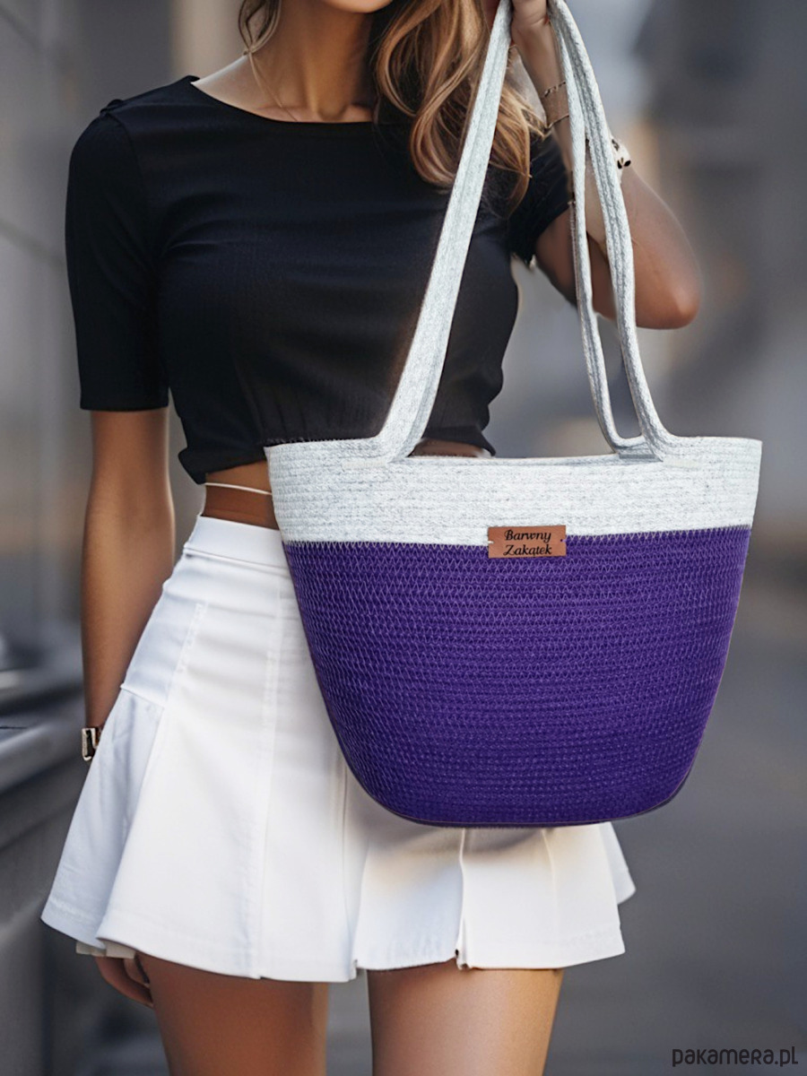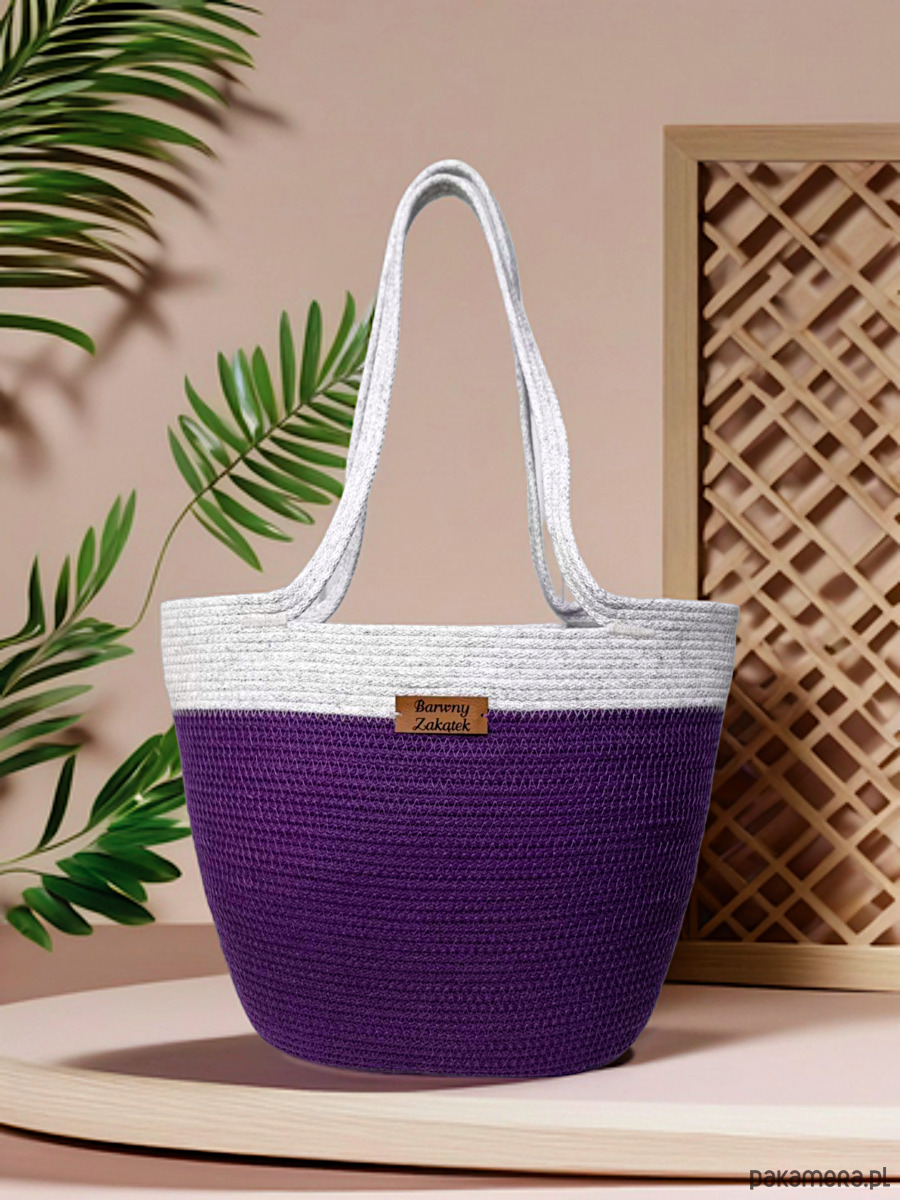 Koszyk miejski ze sznurka to harmonijne połączenie dwóch kolorów – głębokiego, eleganckiego fioletu i subtelnego białego marmuru. Ta wyjątkowa torebka na ramię łączy w sobie swobodę letnich dni z ponadczasową elegancją, dzięki czemu doskonale sprawdzi się o każdej porze roku – z wyjątkiem deszczowych dni.