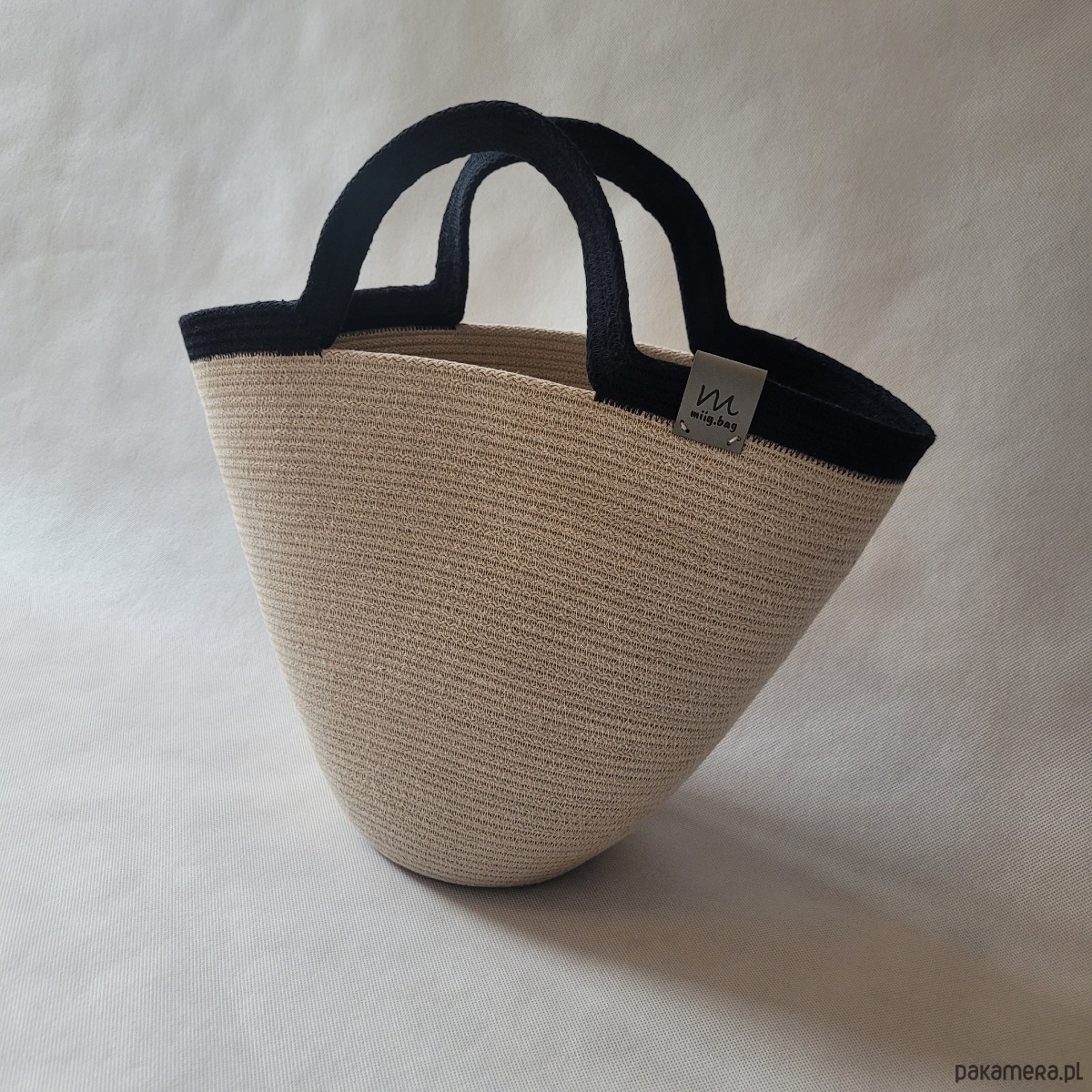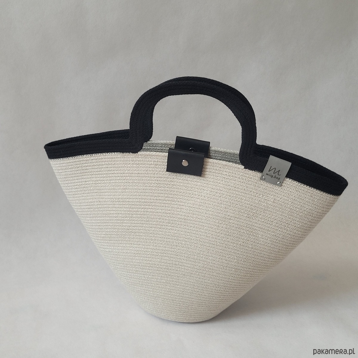 Torebka koszyk , szyta ręcznie ze sztywnego sznurka bawełnianego o grubości 6mm. Idealny wybór do letniej stylizacji, będzie funkcjonalnym i pięknym dodatkiem. Kosz posiada wygodne rączki, jest lekki I pojemny. Może byc z zapieciem magnetycznym lub bez.