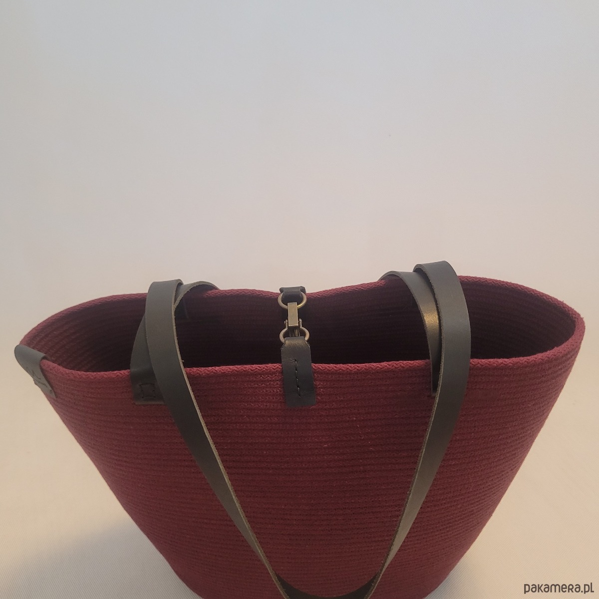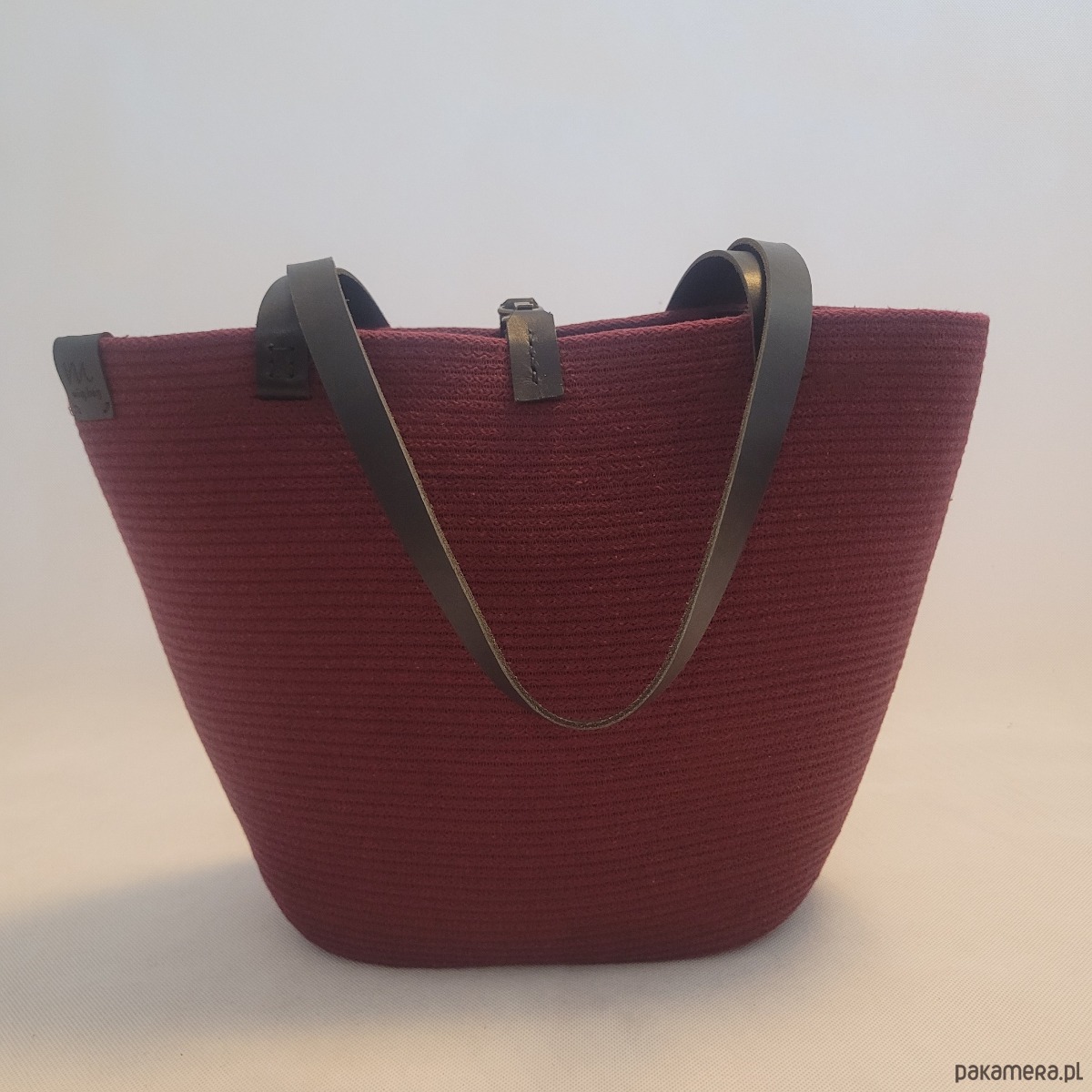 Torebka koszyk, szyta ręcznie ze sztywnego sznurka bawełnianego o grubości 5mm. Idealny wybór do letniej stylizacji, będzie funkcjonalnym i pięknym dodatkiem. Kosz posiada wygodne rączki, jest lekki I pojemny. Ma wszyte małe zapiecie w kolorze rączek.