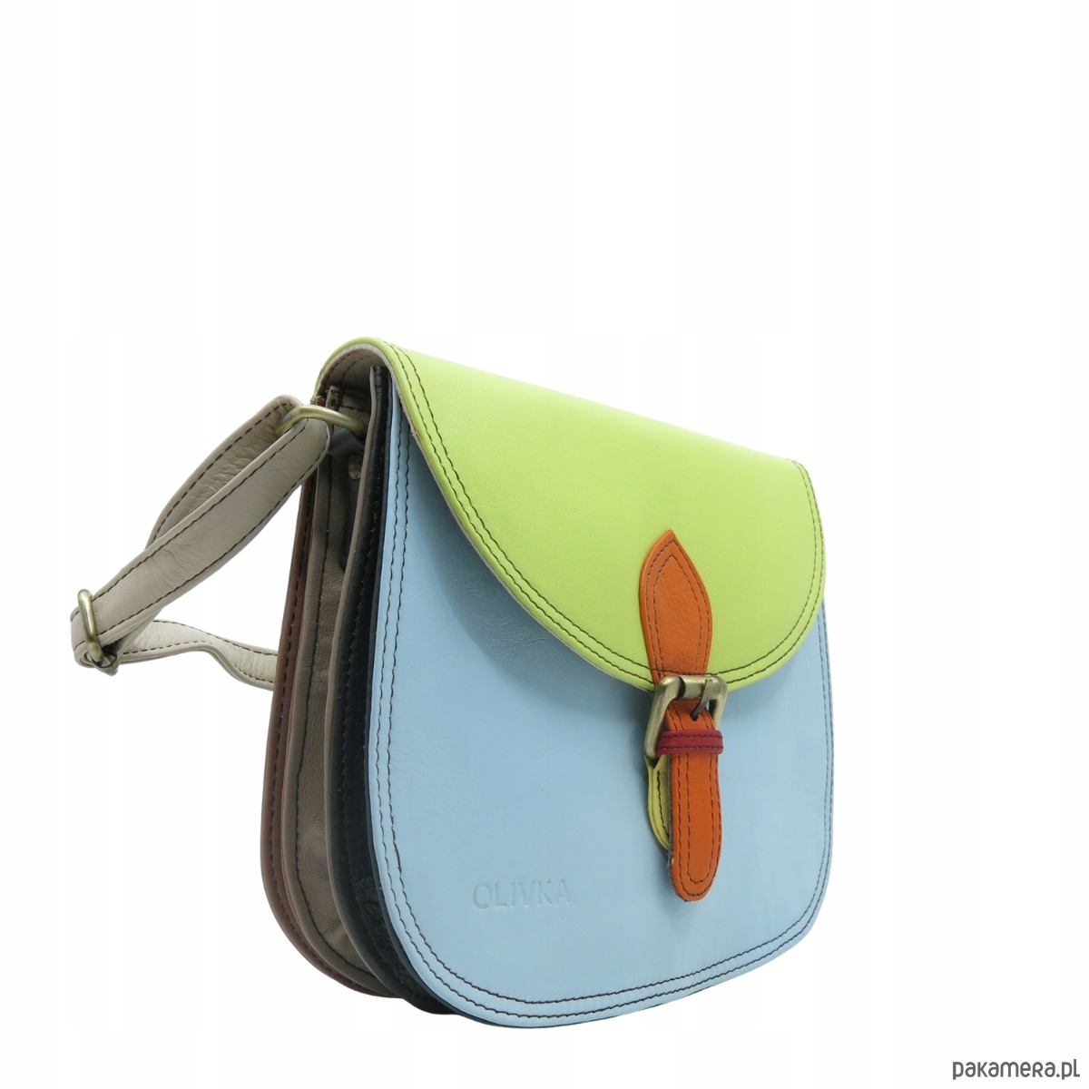 Torebka listonoszka damska skóra naturalna ze skrawków oryginalna OLIVKA