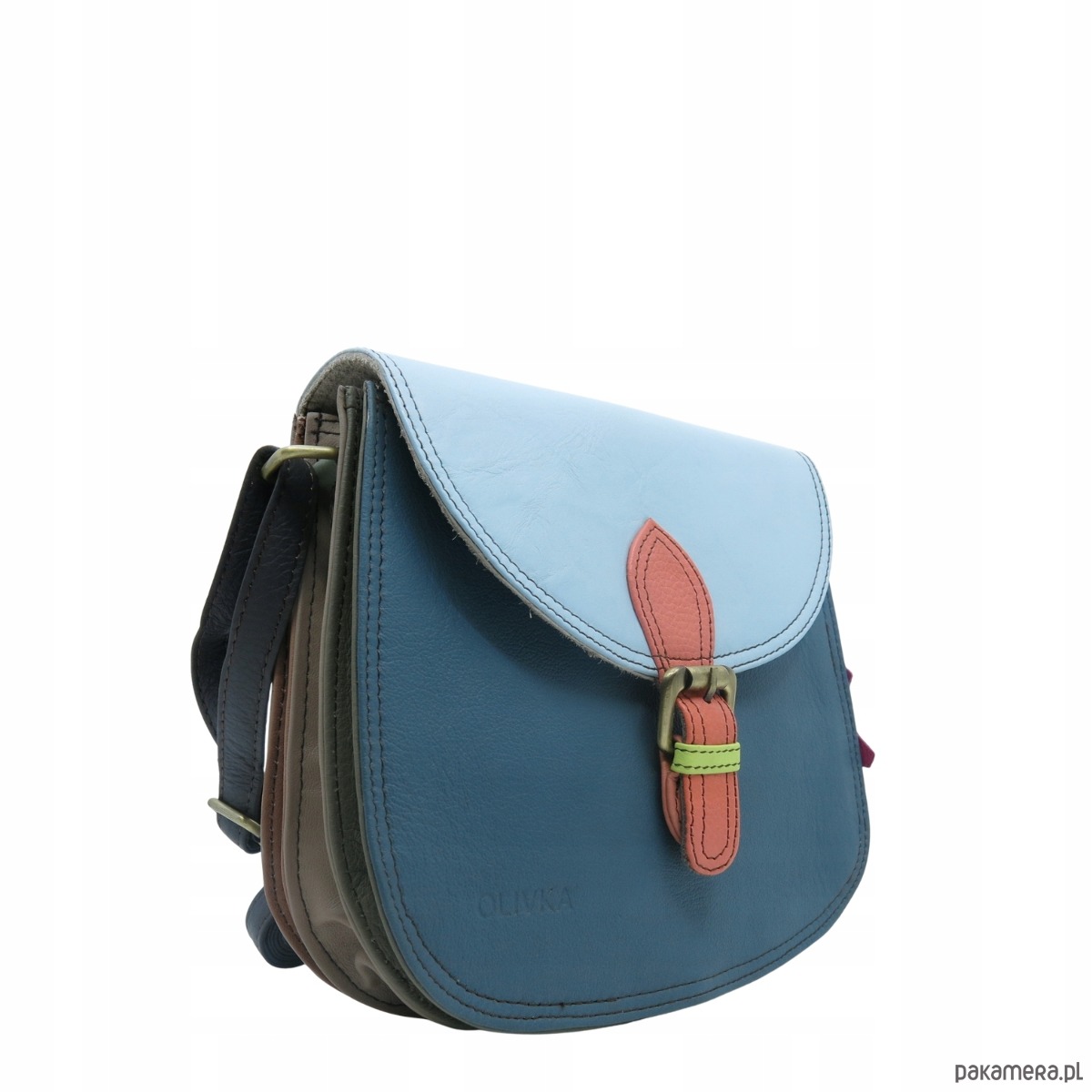 Torebka listonoszka damska skóra naturalna ze skrawków oryginalna OLIVKA