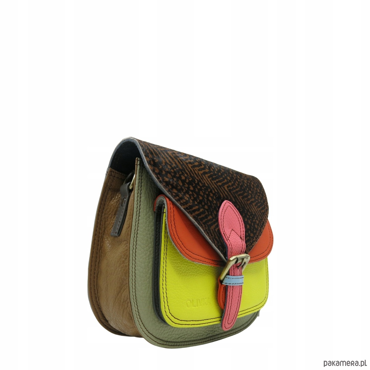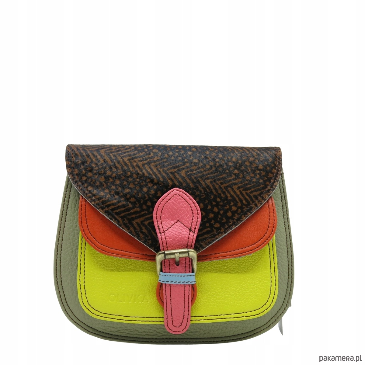 Torebka listonoszka damska skórzana pasek klapka wzór oryginalna OLIVKA