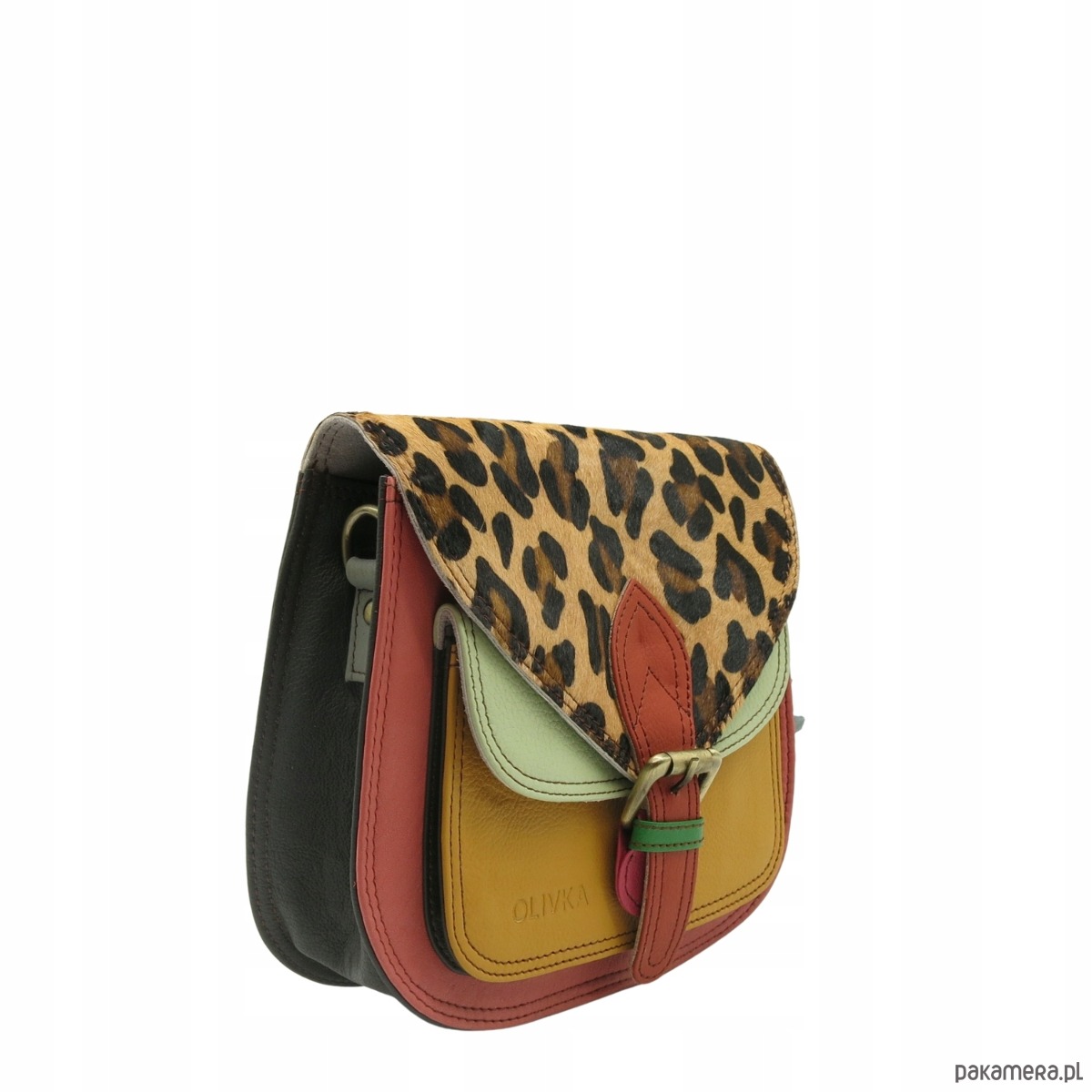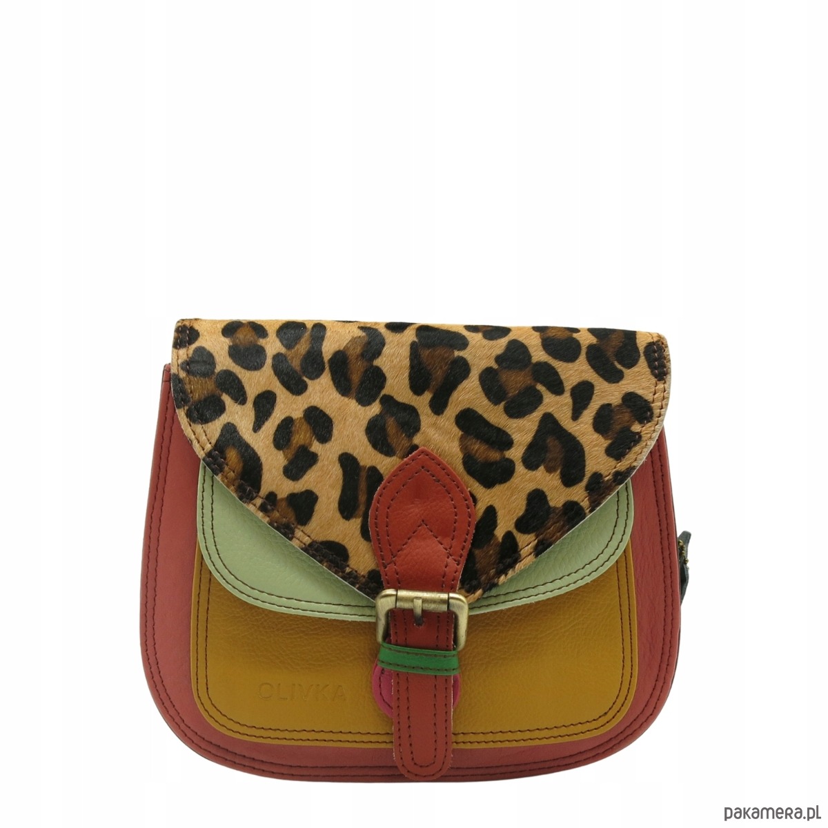Torebka listonoszka damska skórzana pasek klapka wzór oryginalna OLIVKA
