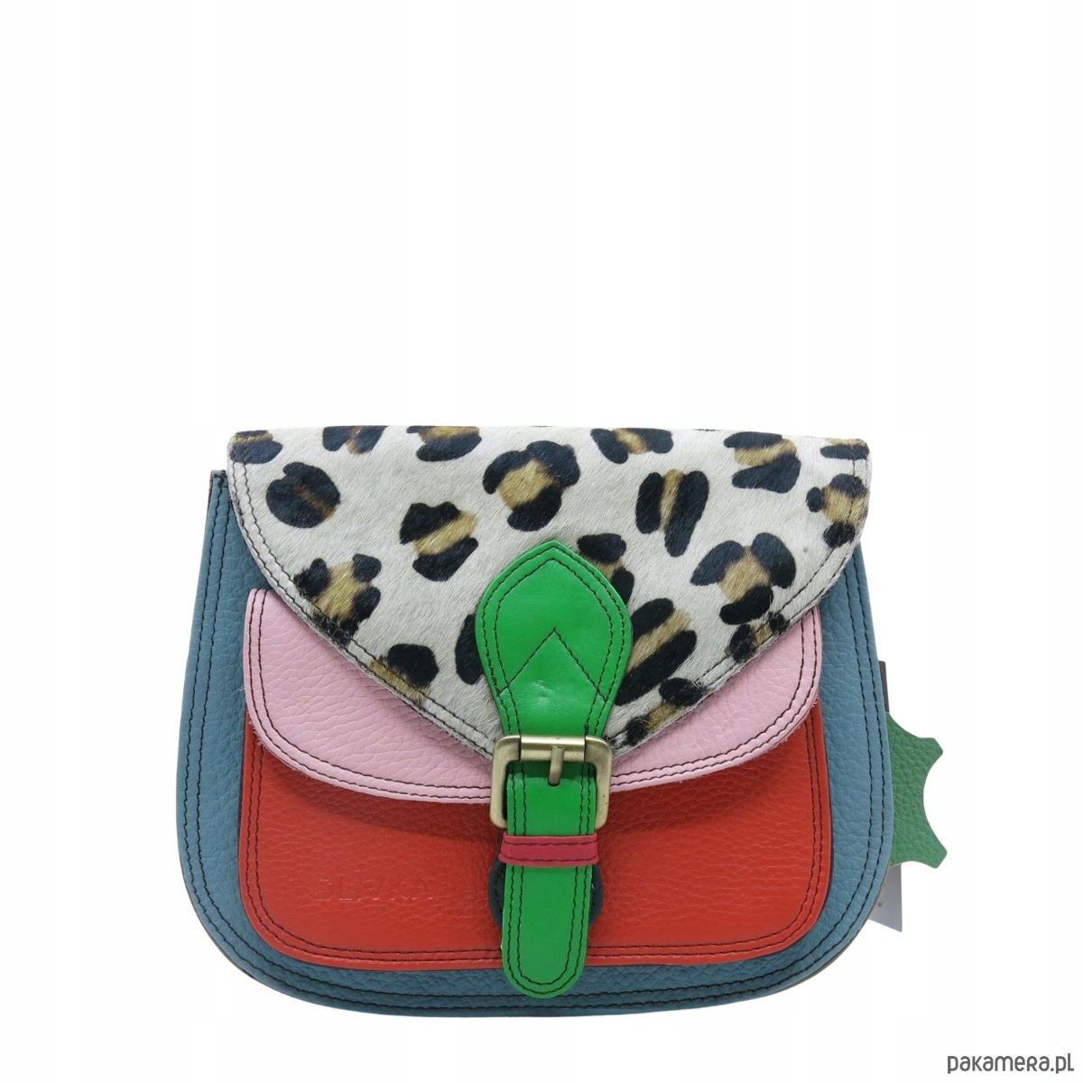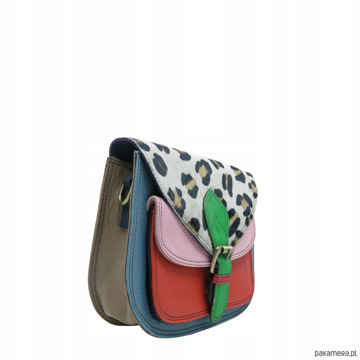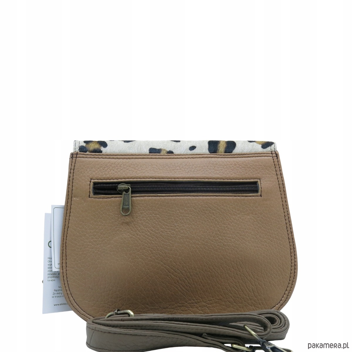Torebka listonoszka damska skórzana pasek klapka wzór oryginalna OLIVKA