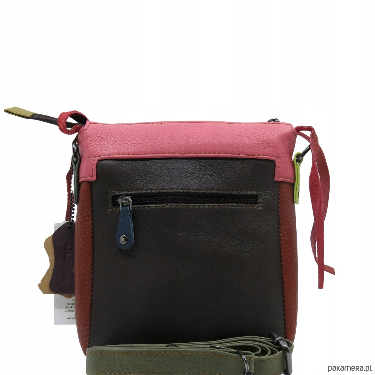 Ta listonoszka to coś więcej niż modny dodatek, to wybór świadomej kobiety. Wykonana ze skrawków skóry naturalnej w duchu zero waste, zachwyca niepowtarzalnym połączeniem kolorów i faktur. Każdy egzemplarz jest unikalny - nie ma dwóch identycznych torebek, co czyni ją nie tylko stylowym, ale i jedynym w swoim rodzaju dodatkiem.